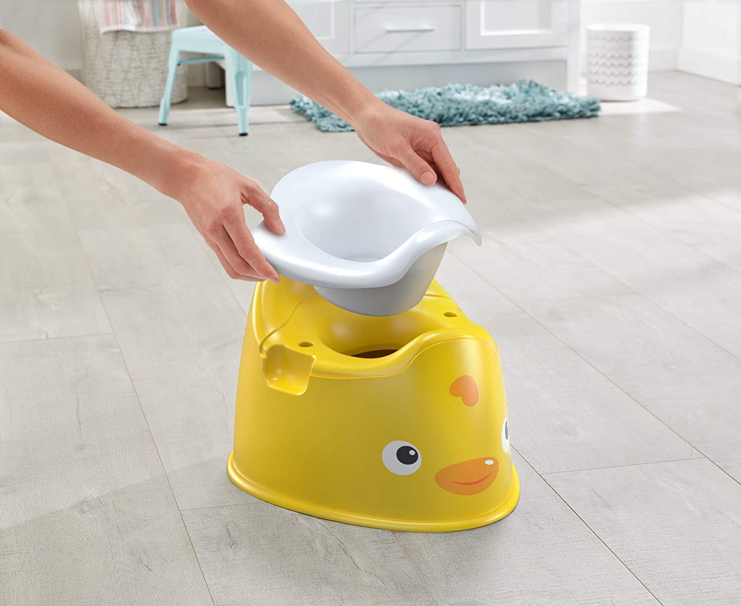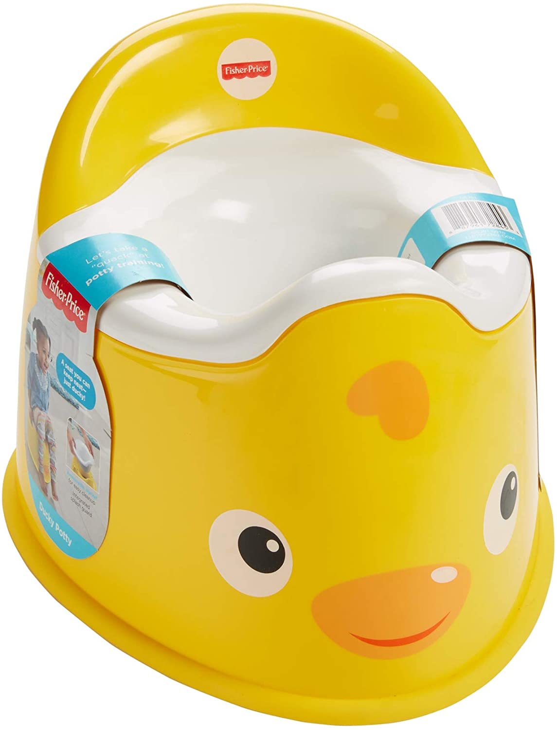 Everybody's gotta learn, and the Fisher-Price Ducky Potty helps the training process along with a cute potty pal. Its friendly face and easy-grasp handles help toddlers feel more comfortable and secure as they do their business, while the built-in splash guard and removable bowl helps keep cleanup quick and easy. Don't "quack", the Ducky Potty's got you covered! Where development comes into play : Gross Motor: As little ones independently lower themselves onto the potty (and get back up again!), they'll develop balance & coordination. Self-Identity: Every successful visit to their potty pal helps build up your toddler's self-confidence! Security & Happiness: The low seat and easy-grasp handles help toddlers feel secure and grounded as they sit on the potty and are introduced to the potty routine.