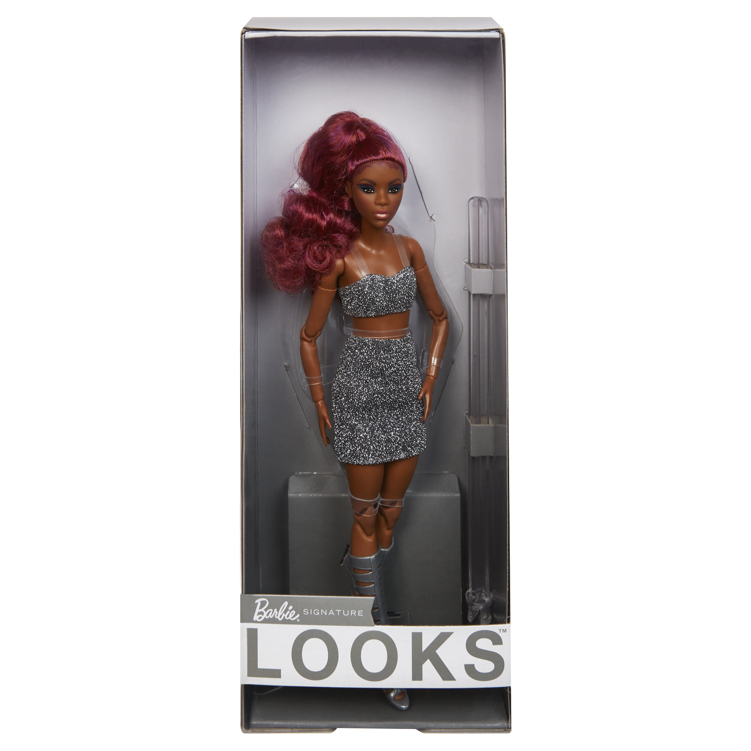 Featuring on-trend fashions with photo-worthy details, Barbie Looks dolls inspire the stylist within. With brand-new face sculpts and posable articulated bodies, they’re ready to style, pose, photograph and post. This Barbie Looks doll features a unique face sculpt and glossy red curls with high-fashion highlights. Her premium fashion includes a glittery crop top with a matching skirt and knee-high boots with cut-out details. Featuring fresh looks and style personality, Barbie Looks dolls make the perfect gift for stylists, fashion aficionados and Barbie collectors. Discover them all to style the whole crew.