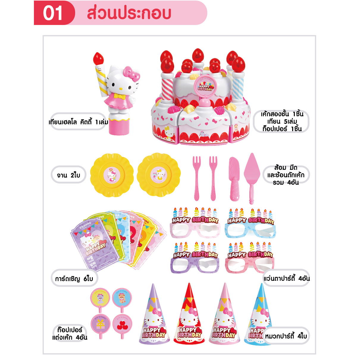 * เตรียมพร้อมกับปาร์ตี้วันเกิดกับเค้กเฮลโล คิตตี้ 2ชั้น ที่ตัดแบ่งเป็นชิ้นๆได้