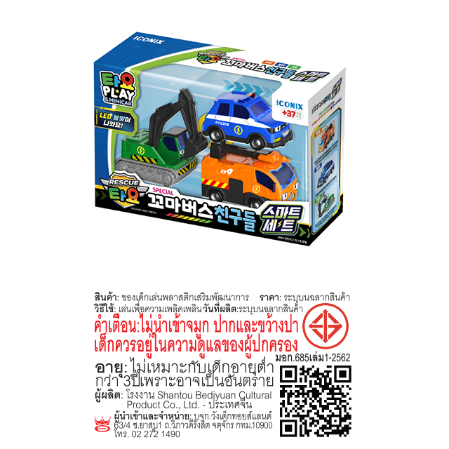 คำเตือน/ข้อห้าม: ห้ามแยกชิ้นส่วนออกจากกัน ชิ้นส่วนมีขนาดเล็ก เด็กควรใช้งานในการดูแลของผู้ปกครอง หรือผู้เชี่ยวชาญ ไม่นำเข้าจมูก และขว้างปา