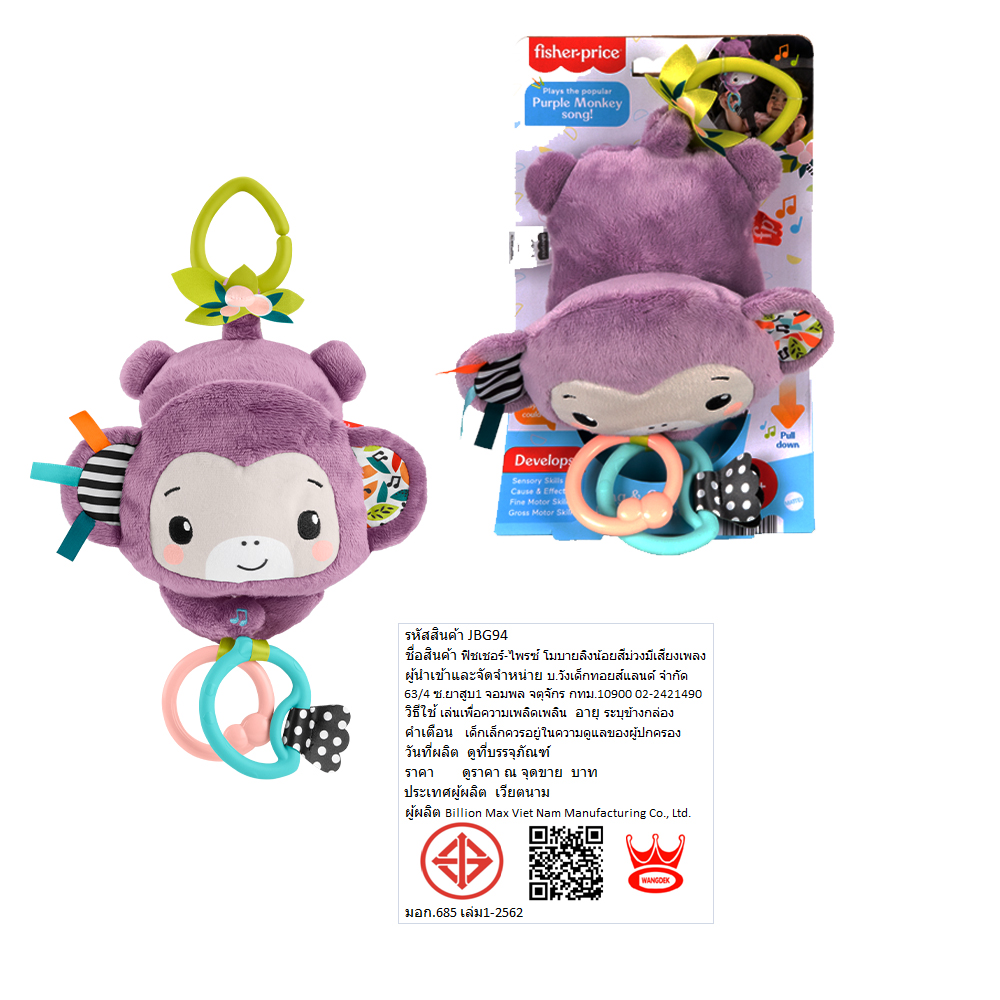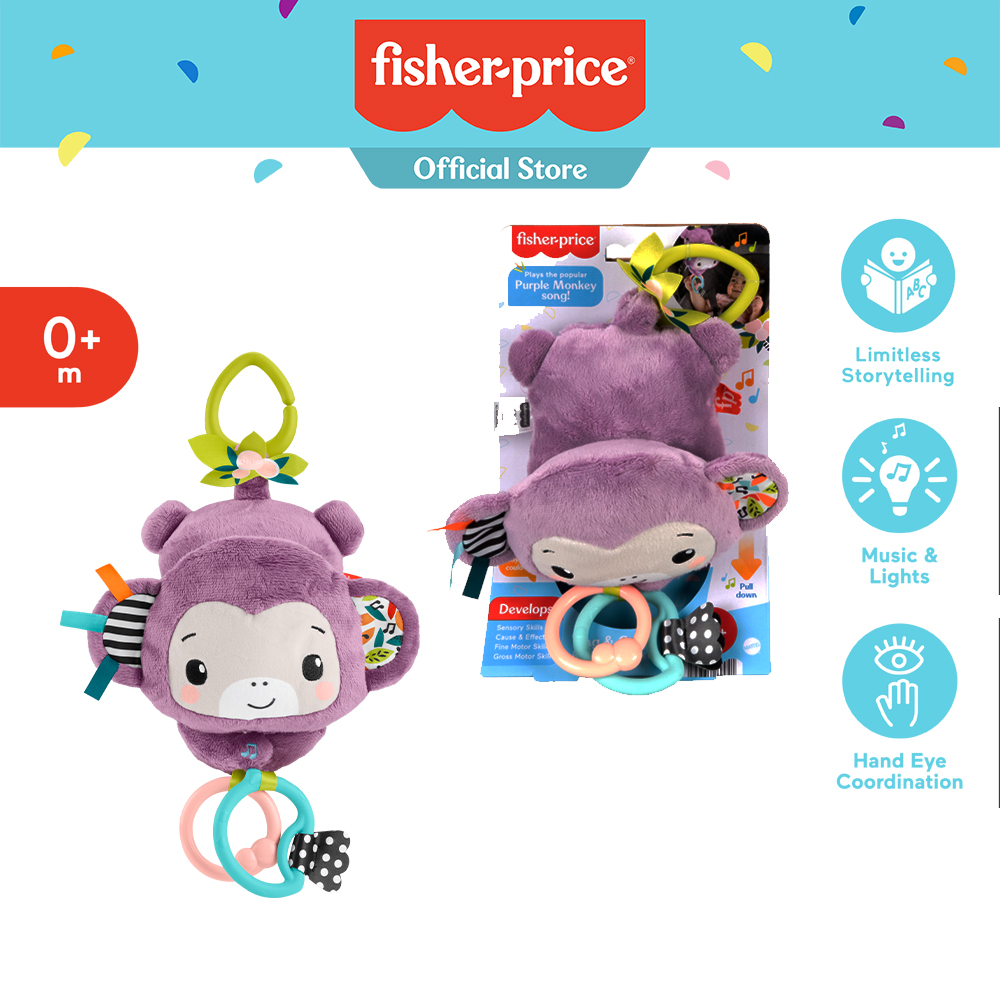 Take your baby’s favorite tune on the go with the Fisher-Price Sing & Go Purple Monkey stroller toy, which features the popular Purple Monkey song from the best-selling Deluxe Kick & Play Piano Gym*!