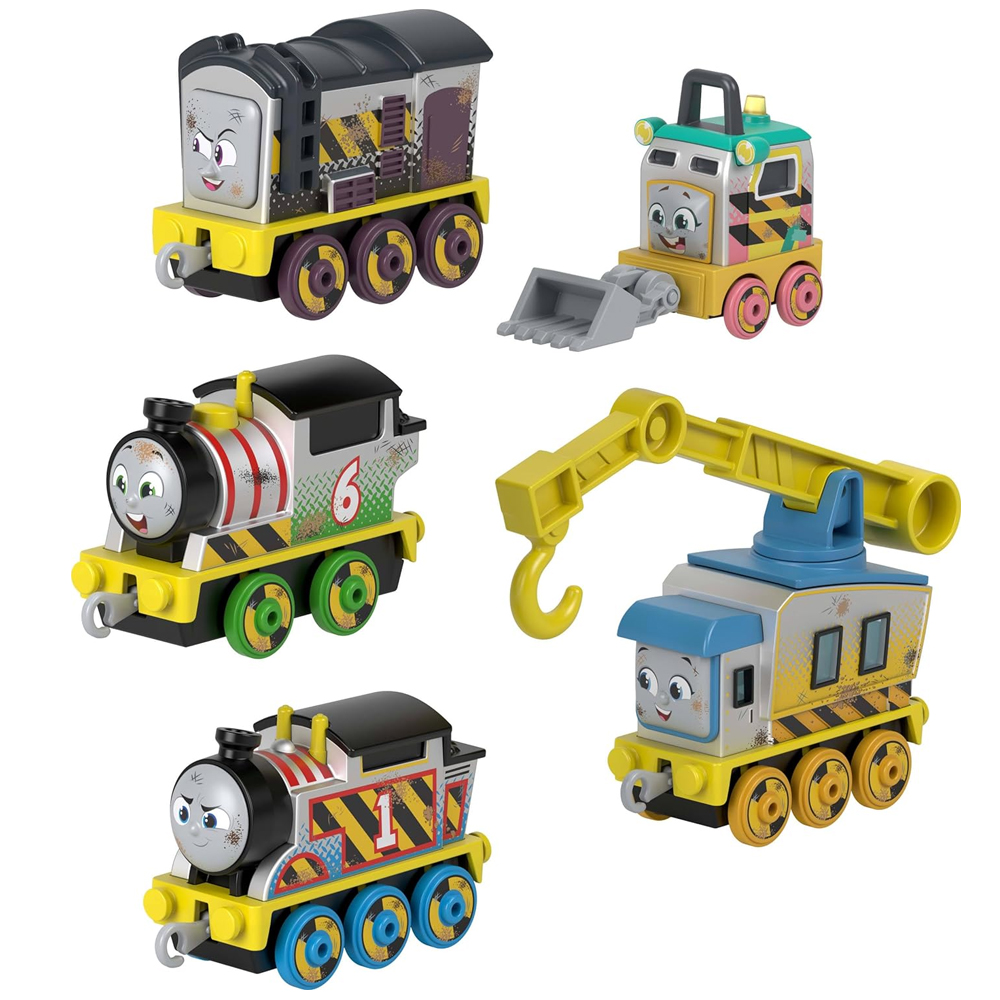 • Construction site-themed motorized toy train set for kids featuring Thomas & Friends characters, Diesel and Troublesome Truck!