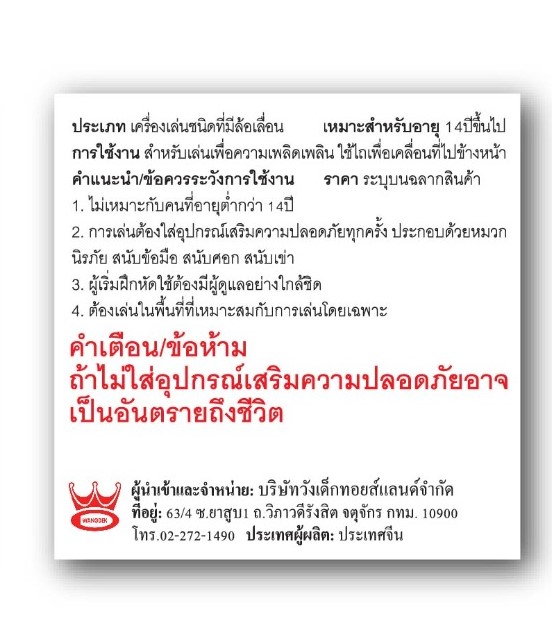 ห้ามแยกชิ้นส่วนออกจากกัน ชิ้นส่วนมีขนาดเล็ก เด็กควรใช้งานในการดูแลของผู้ปกครอง หรือผู้เชี่ยวชาญ ไม่นำเข้าจมูก และขว้างปา