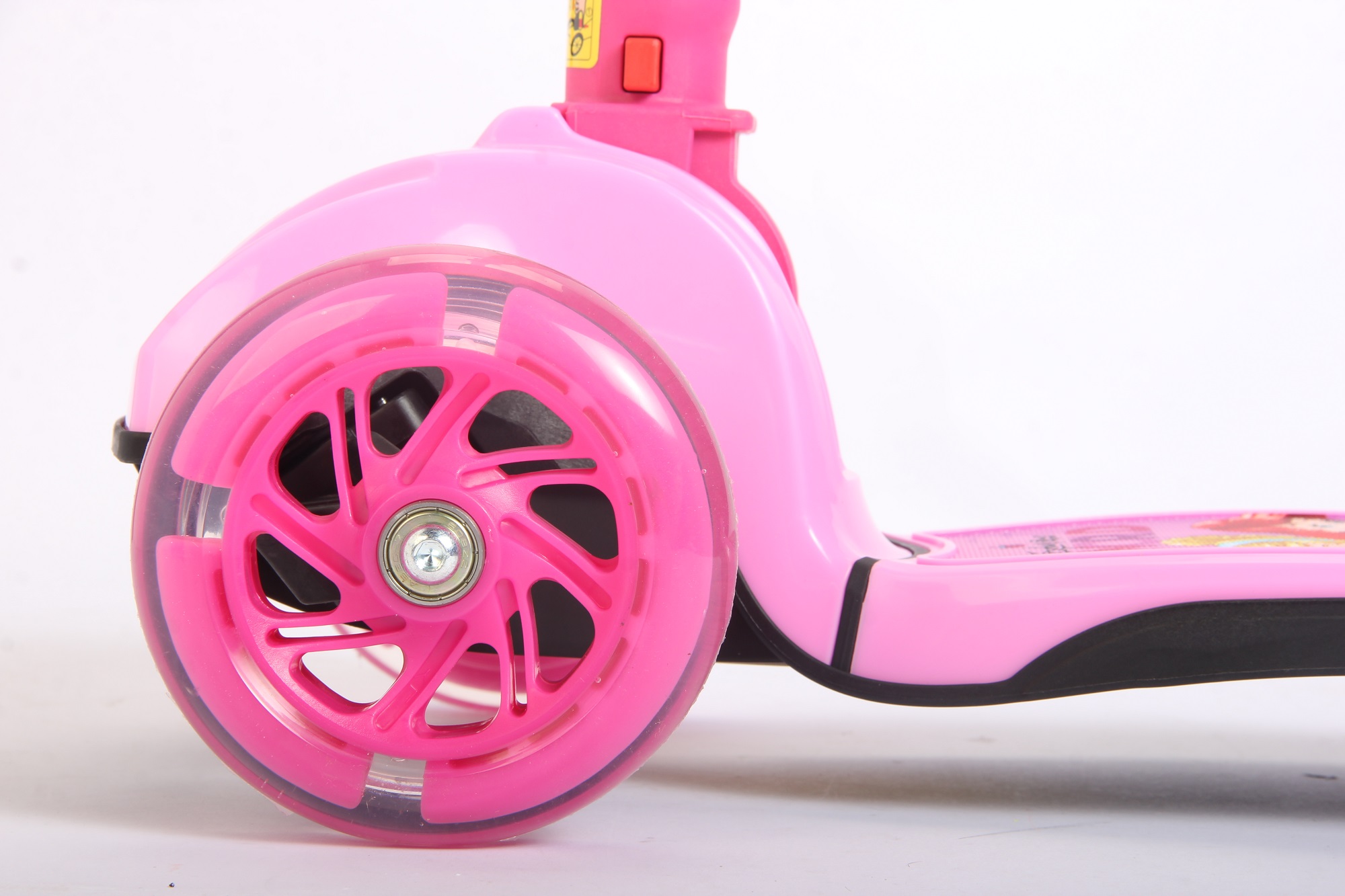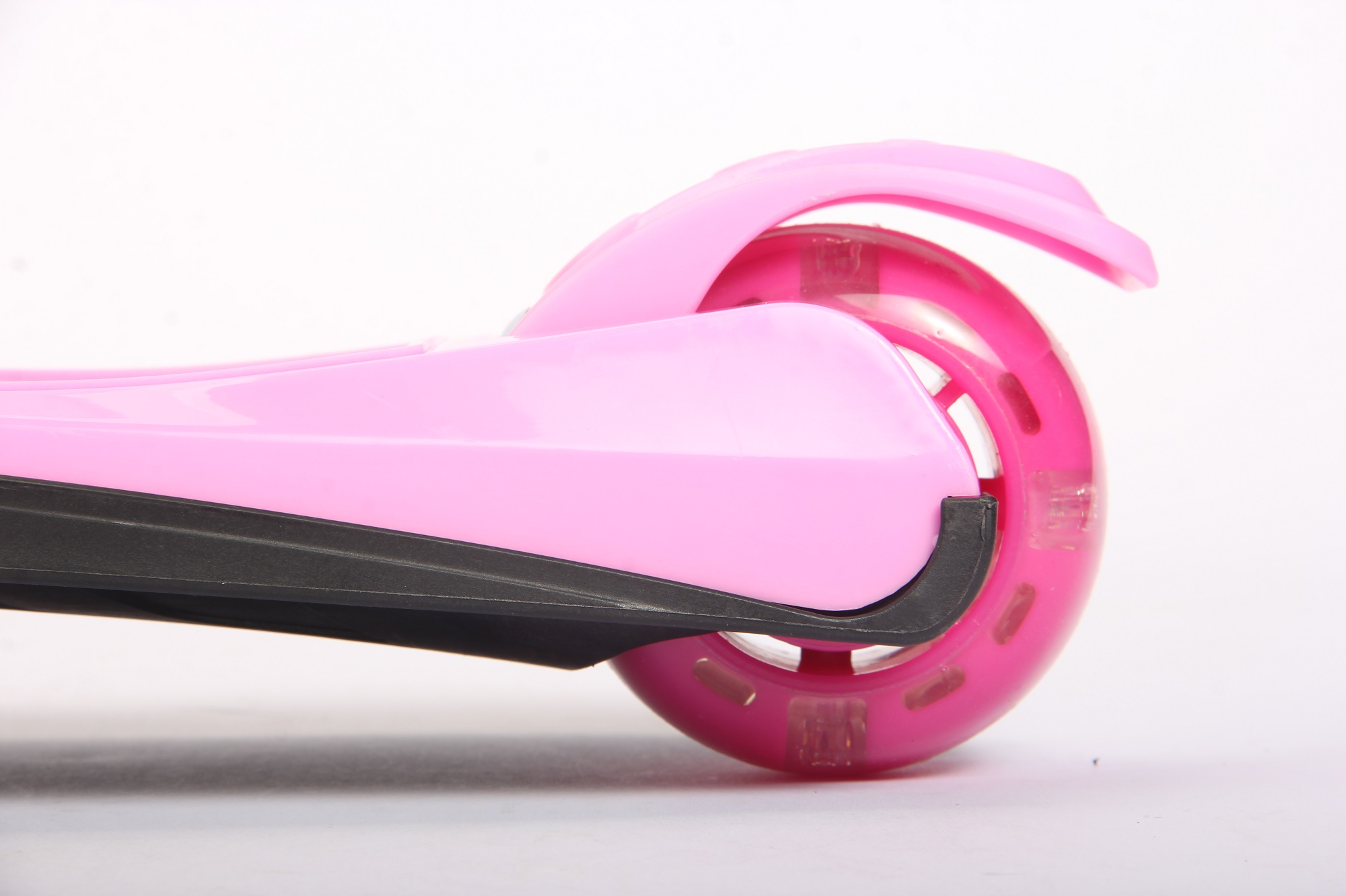 * Material:Material: Alum. T-bar/ Shaft, TPE handle,PP front panel, Nylon Deck, ABEC-7 bearing / Front wheel:125*28mm PU flashing wheel / Back wheel:80*48mm PU flashing wheel