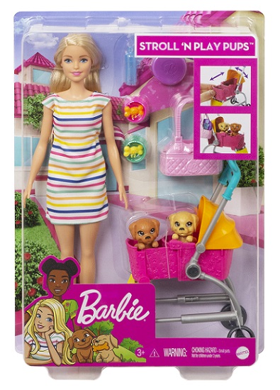 * Play out the perfect puppy play day with the Barbie® Stroll 'n Play Pups™ playset that includes a Barbie® doll, two pet puppies, a transforming stroller and storytelling accessories!
