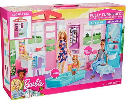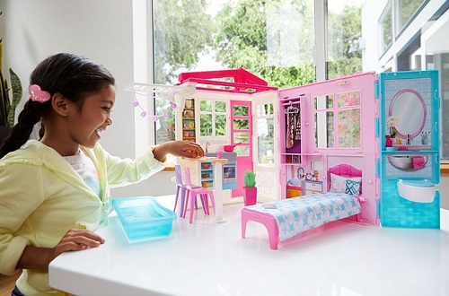 สำหรับน้องๆหนูๆที่มีตุ๊กตาบาร์บี้อยู่แล้ว ไม่ควรพลาดที่จะมีบ้านบาร์บี้นี้ไว้ บ้านมีทั้งหมด 3 ห้อง ไม่ว่าจะเป็นห้องนอน ห้องครัว และห้องน้ำ และยังมีอ่างอาบน้ำมาด้วย เมื่อน้องๆเล่นเสร็จแล้วยังสามารถพับเป็นกระเป๋าพกพาได้อีกด้วย