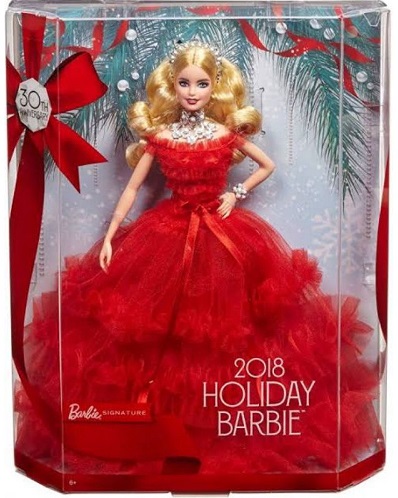 ตุ๊กตา Holiday Barbie™ ได้สร้างตำนานอันยาวนานของจินตนาการและการเฉลิมฉลองมาเป็นเวลา 30 ปี ในวันครบรอบ 30 ปีของเธอ เธอสวมชุดสีแดงที่สวยงามชวนให้นึกถึงชุดที่ Holiday Barbie™ ชุดแรกสวมใส่ เดรสมีแขนเสื้อเปิดไหล่ มีหลายชั้นตลอดช่วงตัวและชุดเดรส แต่งโบว์ที่เอวอย่างปราณีต หยิกหยักศกสีบลอนด์ของเธอที่จัดแต่งด้วยส่วนตรงกลางที่เก๋ไก๋นั้นเหมาะอย่างยิ่งสำหรับดวงตาสีฟ้าของเธอ เครื่องประดับอันประณีต - ที่คาดผม สร้อยคอ และสร้อยข้อมือ - ประดับด้วย "ไข่มุก" 30 เม็ดเพื่อเฉลิมฉลองโอกาสนี้และเพิ่มสัมผัสการตกแต่ง ขอให้ตุ๊กตาบาร์บี้ในวันหยุดปี 2018 นี้เป็นแรงบันดาลใจให้คุณใช้ชีวิตอย่างสนุกสนาน เฉลิมฉลองช่วงเวลาพิเศษ และสร้างความทรงจำที่คุณจะประทับใจไปตลอดชีวิต ประกอบด้วยตุ๊กตา Holiday Barbie™ ปี 2018 ขาตั้งตุ๊กตาสำหรับตั้งโชว์ และใบรับรองผลิตภัณฑ์ของแท้