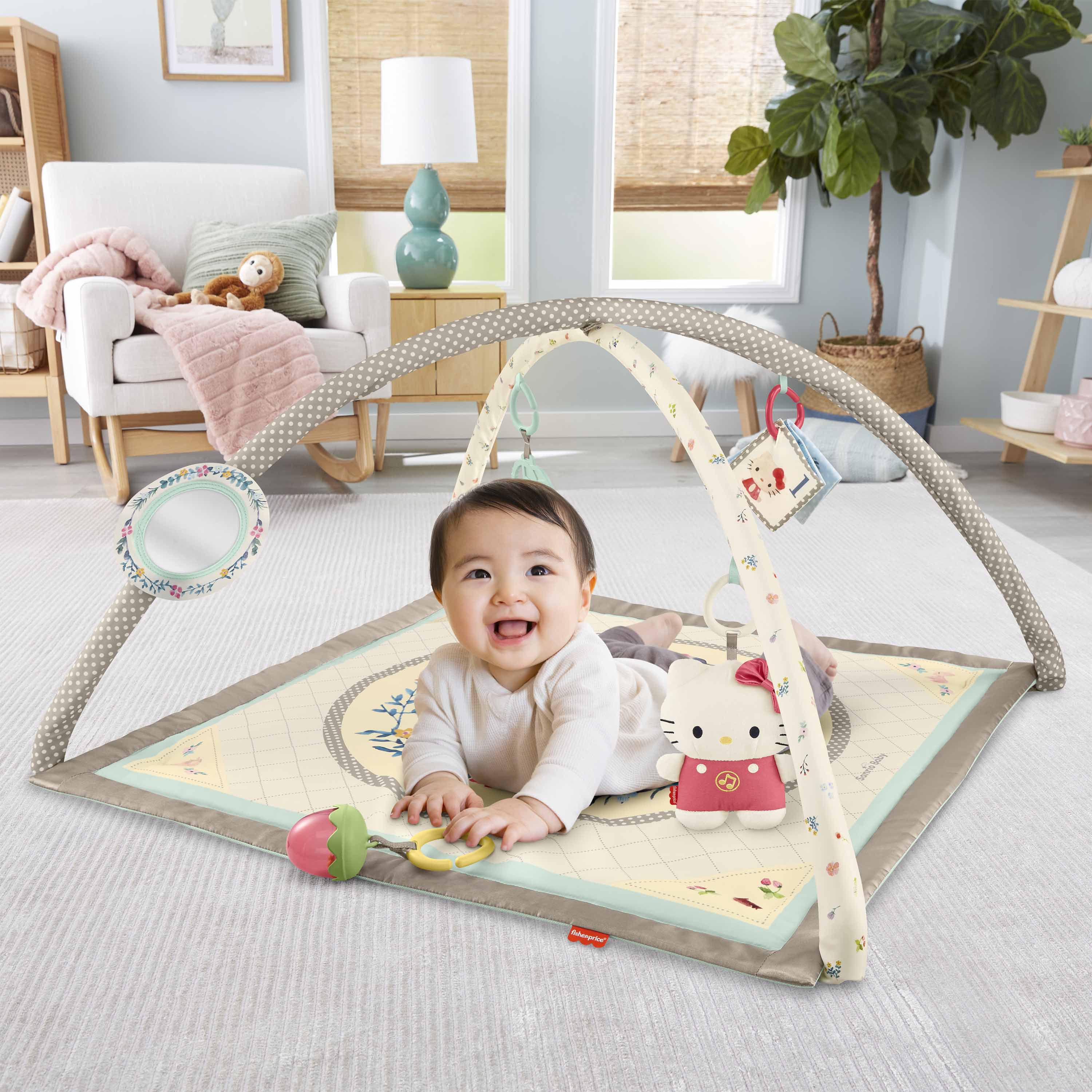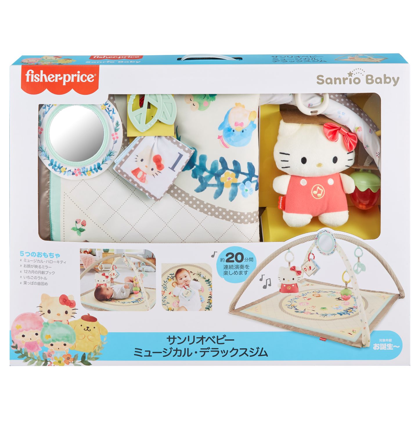 * ยิมสุดหรูแห่งนี้รายล้อมไปด้วยตัวละครซานริโอที่น่ารัก มีของเล่นมากมายที่สามารถกระตุ้นลูกของคุณตั้งแต่แรกเกิดจนถึงการกระตุ้นทางประสาทสัมผัสมากมาย มาพร้อมกับ playmat ที่ซักด้วยเครื่องได้และของเล่นที่ปรับตำแหน่งได้ 5 ชิ้น รวมทั้งกระจก กระดิ่งสตรอว์เบอร์รี่ และฟันรูปใบไม้ หนังสือผ้า และตุ๊กตาเฮลโลคิตตี้ 20 นาที แบตเตอรี่: แบตเตอรี่ AAA x 2 (แยกจำหน่าย)