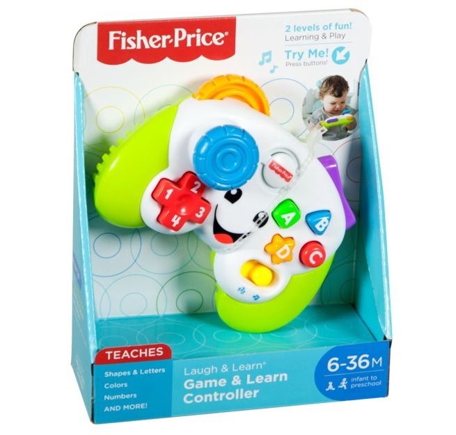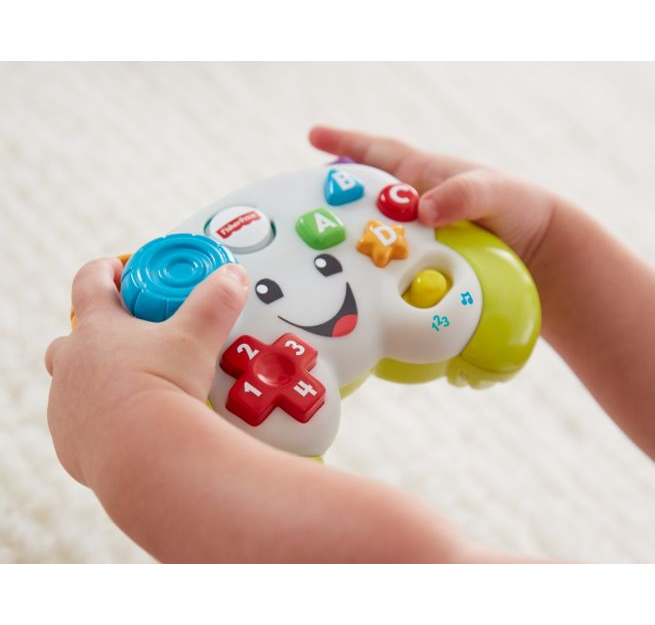 Your baby can get into the gaming fun with this Laugh & Learn® toy video game controller, which features two 'gaming' modes and lots of hands-on activities! As little gamers move the joystick and press the ABCD and number buttons, they'll hear exciting songs, sounds, and phrases that introduce numbers, shapes, colors, and more!