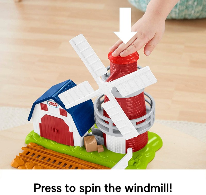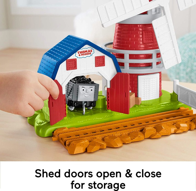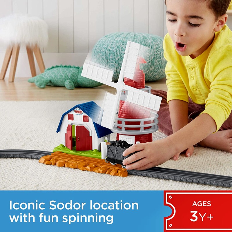 จะมีกังหันลมที่ไหนเหมือนกังหันลมนี้ที่ไม่ต้องรอวันลมแรงมาทำให้กังหันหมุน ชุดของเล่นกังหันลมจากแบรนด์ฟิชเชอร์ไพร์ส ร่วมกับโทมัส แอนด์เฟรนด์สนี้จำลองมาจากกังหันลมบนเกาะโซดอร์ซึ่งจะหมุนกังหันเมื่อมีรถไฟวิ่งผ่านหรือเมื่อกดปุ่มด้านบนกังหัน นอกจากนี้น้อง ๆ ยังสามารถเปิดประตูโรงเก็บของที่อยู่ข้าง ๆ กังหันลมได้เพื่อเก็บหัวรถจักรได้ 1 คัน จะไว้งีบหลับหรือเล่นซ่อนหาก็ได้ ของเล่นชุดนี้สามารถต่อเข้ากับชุดรางโทมัส แอนด์ เฟรนด์ส อื่น ๆ (ซึ่งมีแยกจำหน่าย) ได้อีกตามแต่จินตนาการ