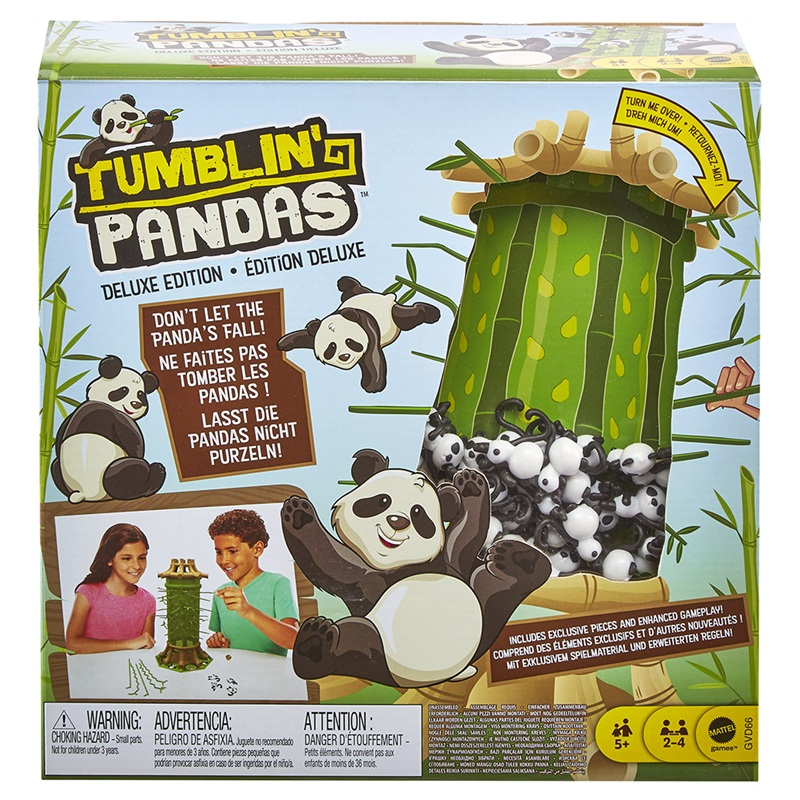 เกมทัมบลิ้งแพนด้าคือเกมรุ่นพิเศษของเกมทัมบลิ้งมังกี้ส์ ฟิกเกอร์รูปหมีแพนด้าตัวสีขาวดำสุดพิเศษอาศัยอยู่ในหอคอยรูปเจดีย์ที่สร้างด้วยไม้ไผ่ ไม้ไผ่ที่โค้งงอได้เป็นพิเศษทำให้การเล่นเกมนี้มีความท้าทายมากขึ้น ผู้เล่นต้องโยนลูกเต๋าเพื่อดูว่าต้องดึงไม้ไผ่ไหนออก หากเจ้าแพนด้าหล่นลงไปที่ฐานด้านล่างต้องมาลุ้นกันว่าผลลัพธ์จะเป็นอย่างไร เจ้าแพนด้าจะได้กลับขึ้นไปบนหอคอย หรือไปหาผู้เล่นคนอื่น หรือออกจากเกมไป