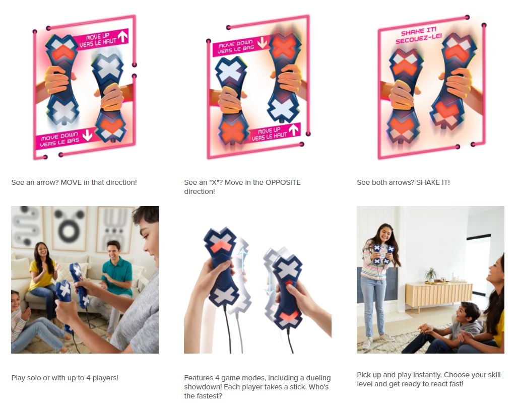 บนอุปกรณ์มีเกมให้เลือกทั้งหมด 4 แบบ เลือกเกมที่คุณจะเล่น เมื่อผู้เล่นเห็นไฟแล้วรีบทำท่าให้ถูกตามสัญลักษณ์! สังเกตให้ดีว่าไฟแสดงลูกศรไหม? ถ้าใช่ให้ขยับท่าไปตามทิศทางนั้น หากเห็นไฟเป็นสัญลักษณ์ "X" ให้ขยับไปทิศตรงข้าม แต่ถ้าลูกศรชี้ขึ้นบนและลงล่างสว่างพร้อมกันให้เขย่า! จะเล่นคนเดียวหรือเล่นกับเพื่อนก็ได้ถึง 3 คน ด้วยการใช้คำสั่งทั้งแบบแสงและเสียง เกมนี้ จึงท้าทายความเร็วและความแม่นยำของคุณในการขยับและออกท่าทาง