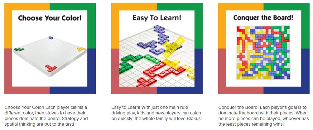 เกมตารางกลยุทธ์ (Blockus) เป็นเกมที่เล่นได้ทั้งครอบครัว มาสนุกสนานกับการยึดพื้นที่และปกป้องอาณาเขตด้วยวิธีการเล่นที่แสนง่าย แต่มีกลยุทธ์ที่ไม่รู้จบและความท้าทายที่รอคุณอยู่