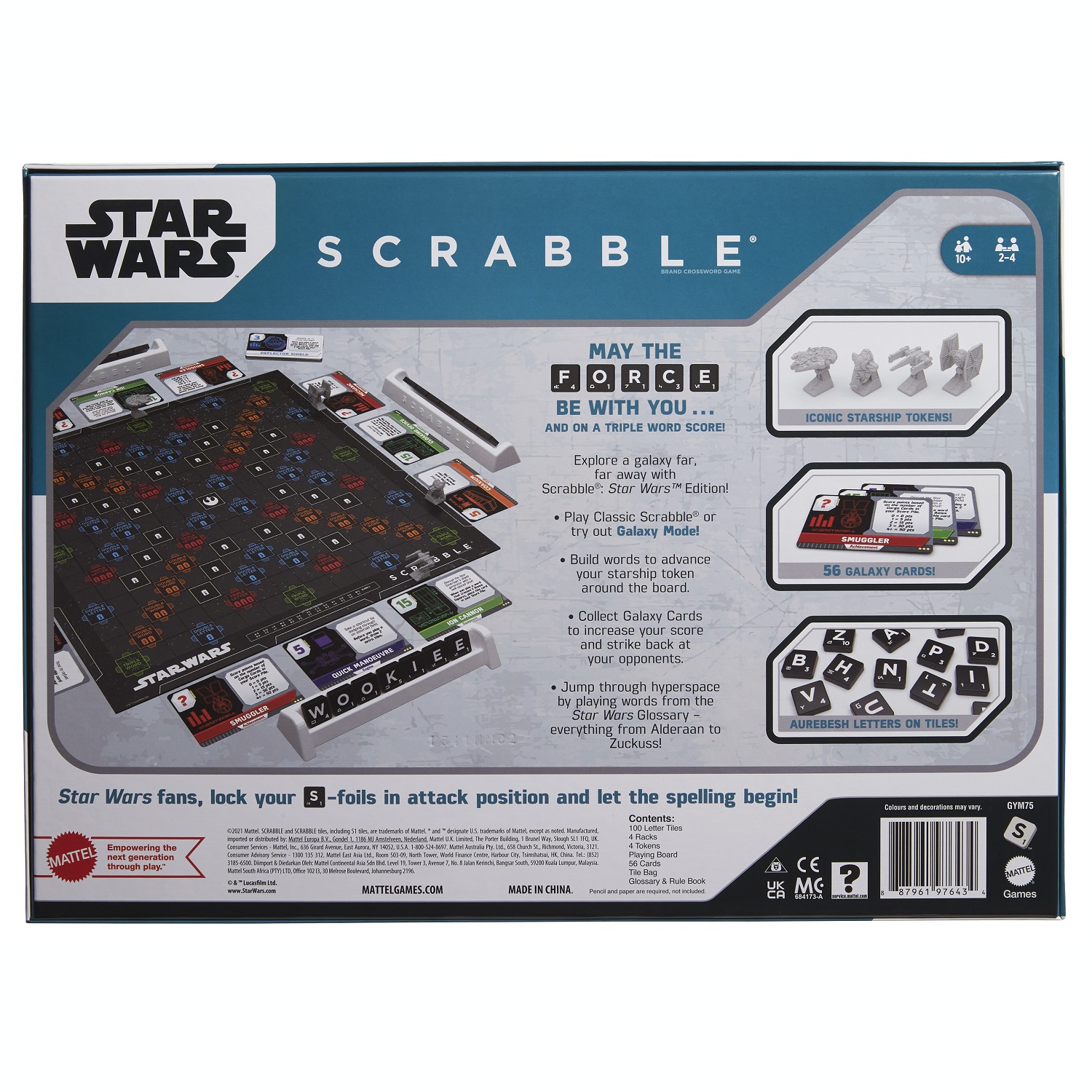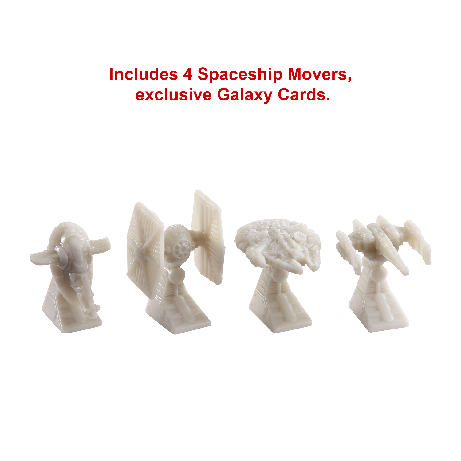 - หรือลองเล่นแบบโหมดกาแล็กซี่เพื่อประสบการณ์การเล่นเสมือนเหล่าสตาร์วอร์ส โหมดกาแล็กซี่นี้มีวิธีการให้คะแนนที่ต่างออกไปจากเกมคลาสสิกเพื่อให้ผู้เล่นทุกระดับสามารถสนุกกับเกมนี้ได้ คำศัพท์ที่คุณสร้างขึ้นมีผลให้คุณสามารถเคลื่อนย้ายยานอวกาศไปรอบ ๆ กระดานได้เพื่อรวบรวมการ์ดกาเล็กซีสำหรับเพิ่มพลังและแต้ม ในชุดนี้ประกอบด้วย 4 ยาน ได้แก่ ยานมิลเลนเนียม ฟอลคอน, ยานอวกาศของ Boba Fett, ยานรบเอ็กซ์วิง หรือยานทายไฟต์เตอร์