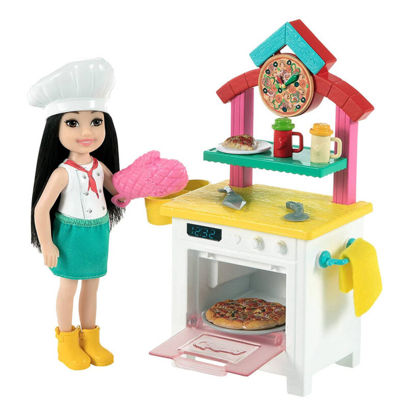เชลซีเพลย์เซตชุดอาชีพ คละแบบ ที่จะให้น้องๆสนุกไปกับอาชีพ นักฝึกสุนัข หรือ เชฟทำพิซซ่าที่จะมาพร้อมอุปการณ์ต่างๆที่ต้องใช้ในธีมอาชีพนั้นอย่างสมจริงเพื่อให้จินตนาการน้องๆไม่สะดุดและ ผิดเพี้ยนไป ในชุดมาพร้อมตุ๊กตาเชลซี สำหรับเด็กอายุ 3 ขวบขึ้นไป