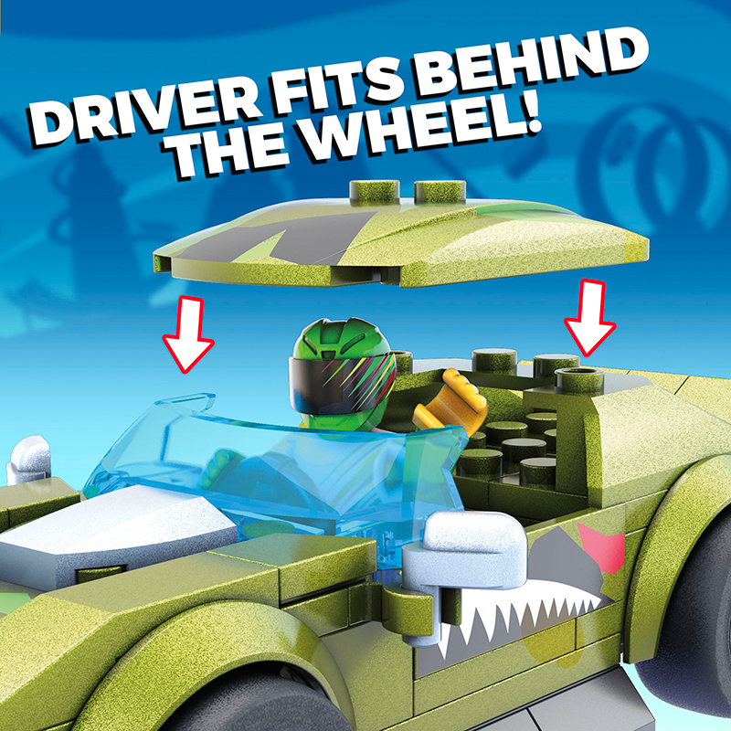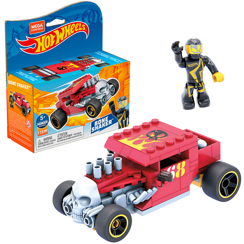 ตัวต่อรถแข่งฮอตวีล มีให้เลือกหลายแบบ เช่น รถคลาสสิกอย่างรุ่น Bone Shaker, Twin Mill และรถแบบดั้งเดิม เช่น Muscle Bound, GT Hunter แต่ละชุดสามารถต่อเป็นรถ สมบูรณ์ด้วยรายละเอียดฉบับฮอตวีล มาพร้อมฟิกเกอร์คนขับขนาดจิ๋วที่สามารถโพสต์ท่าทางได้ หลังต่อเสร็จแล้วรถสามารถวิ่งได้ หรือจะแกะออกต่อใหม่ก็ได้ ชิ้นส่วนตัวต่อสามารถนำไปต่อกับตัวต่อรถแข่งฮอตวีลอื่นได้ หรือจะต่อกับตัวต่อเมก้าคอนสตรัคซ์อื่นก็ได้ตามจินตนาการของคุณเอง