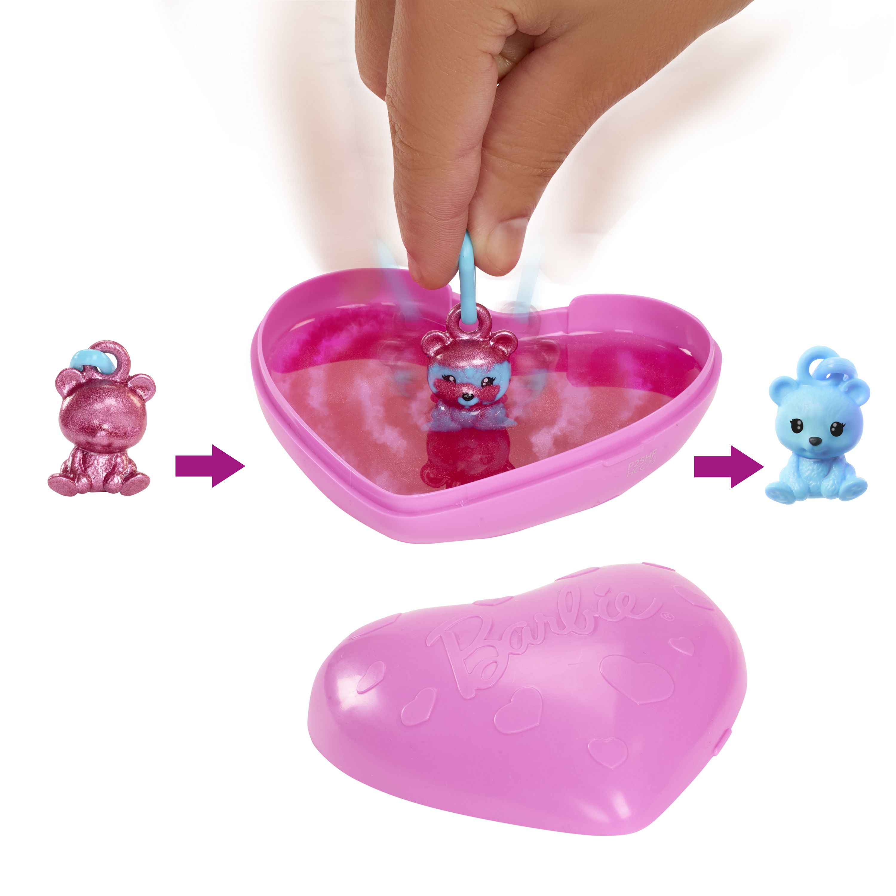 * เปิดกล่องรูปหัวใจเพื่อพบทั้งตุ๊กตาสัตว์เลี้ยง สร้อยคอและตัวห้อย