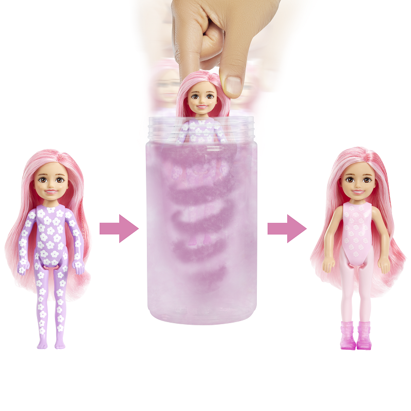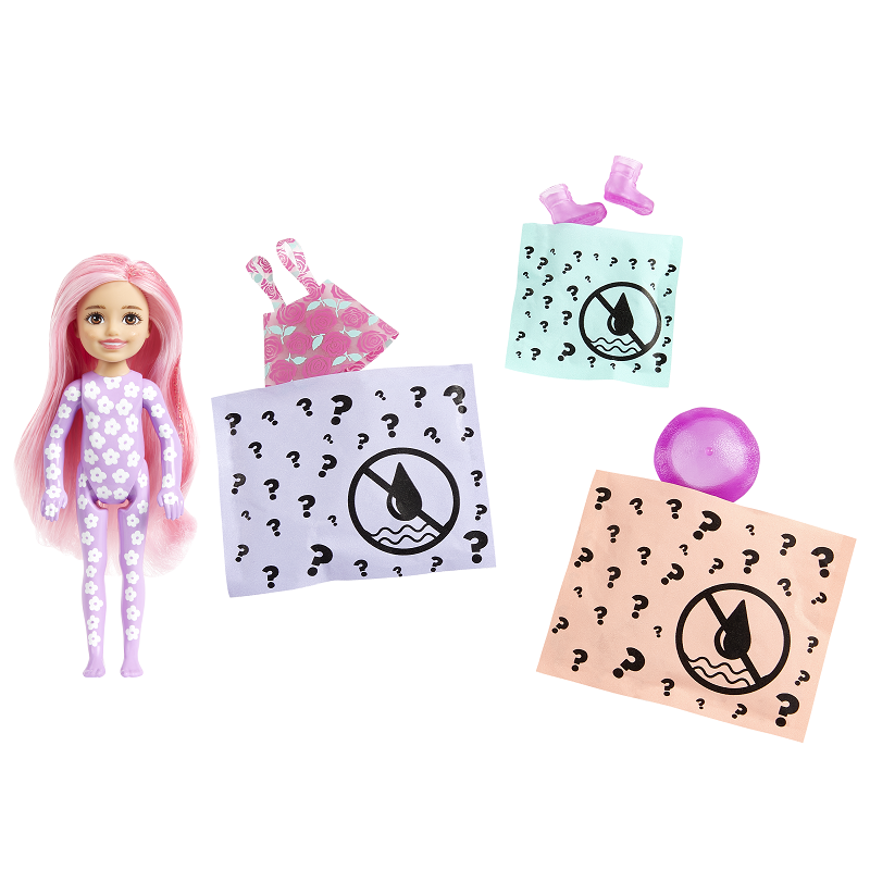 "บาร์บี้ คัลเลอร์ รีวีลกับเชลซีและผองเพื่อน มาในกล่องเล็กกะทัดรัด พร้อมซองสุ่มอีก 3 ชิ้นที่รอให้คุณหนู ๆ ไปค้นพบ