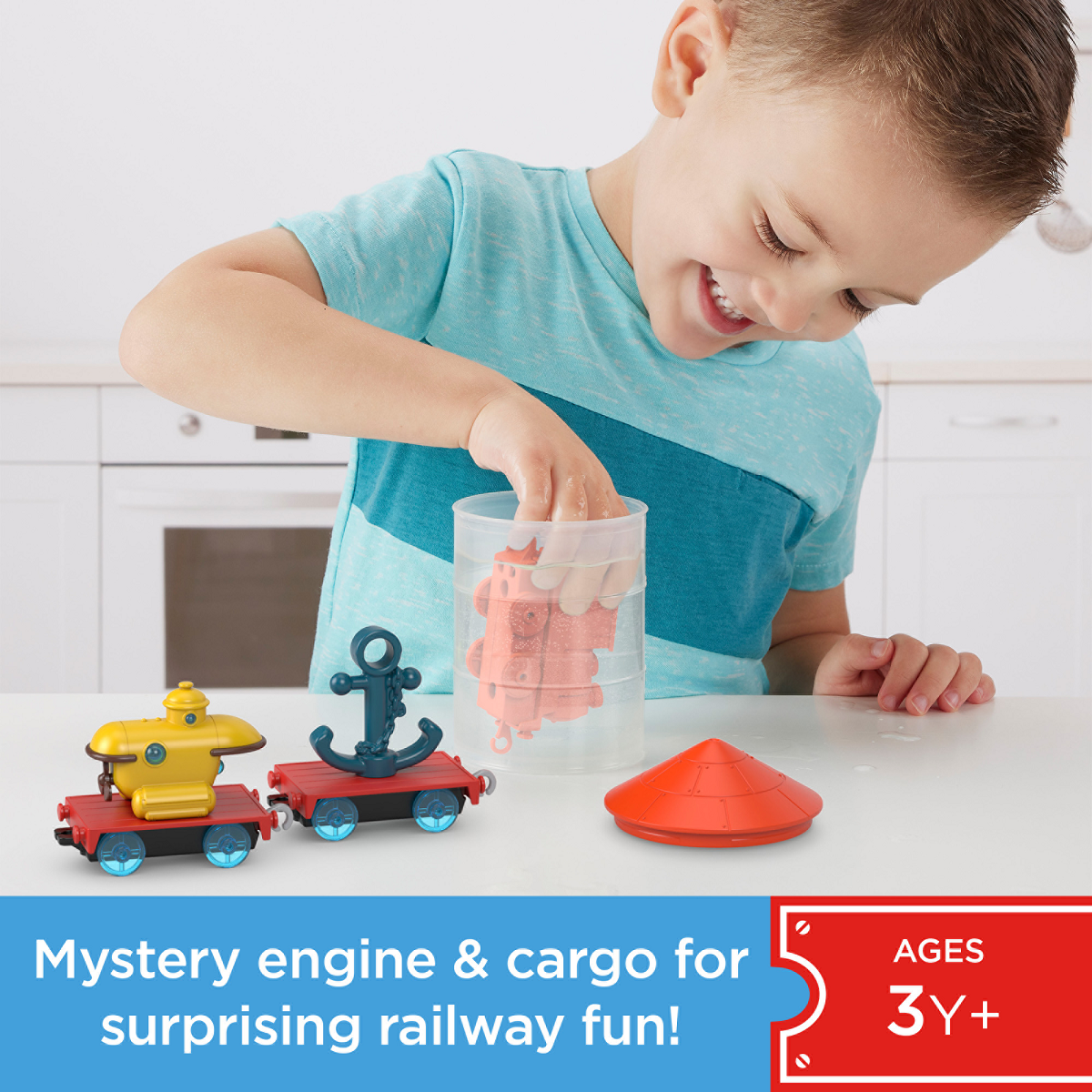 • ในกล่องประกอบด้วยรถไฟของเล่น 1 ขบวนที่มีรถไฟลึกลับ 1 ตู้ ตู้สินค้า 2 คัน และชิ้นส่วนสินค้าเซอร์ไพรส์ 2 ชิ้น