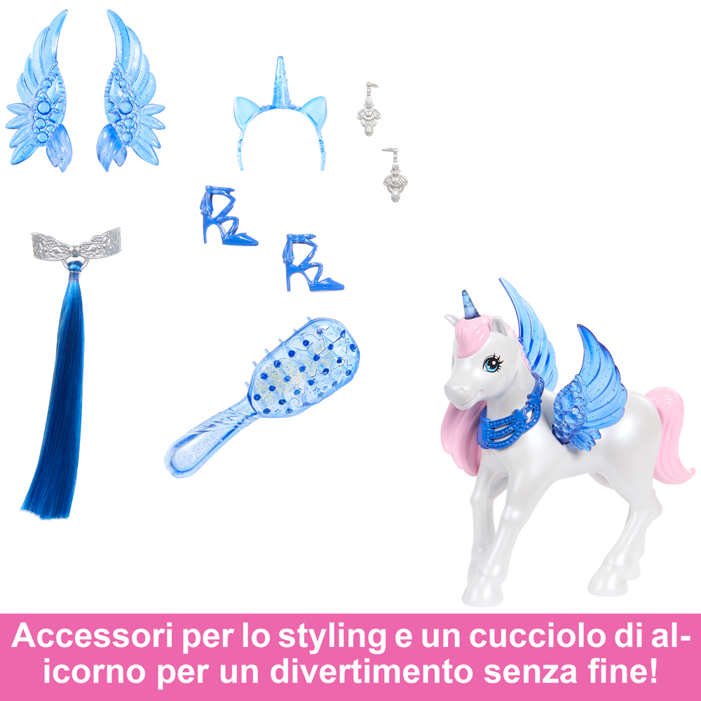 ????ตุ๊กตามาพร้อมกับต่างหูสีเงิน รองเท้าส้นสูงแบบมีสาย แปรง และเพื่อนชาวอัลลิคอร์นตัวน้อยแสนวิเศษ!