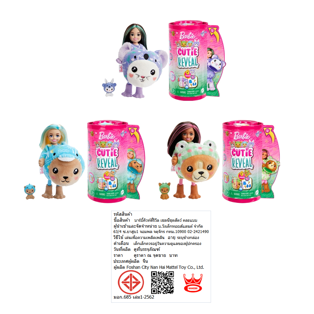 • ตุ๊กตา Barbie Cutie Reveal Chelsea มอบประสบการณ์แกะกล่องที่น่ารักที่สุดพร้อมกับเพื่อนสัตว์ในธีมชุดตุ๊กตา แฟชั่น และความสนุกที่เปลี่ยนแปลงได้ ด้วย 6 เซอร์ไพรส์ในแพ็กเกจเดียว!