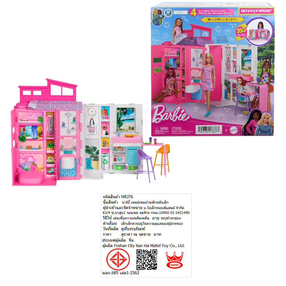 •เด็ก ๆ สามารถจินตนาการถึงเรื่องราวน่าประทับใจมากมายไปกับบ้านตุ๊กตาบาร์บี้หลังน้อยที่มาพร้อมกับโซนต่าง ๆ ถึง 4 แห่งและอุปกรณ์เสริมกว่า 11 ชิ้น!