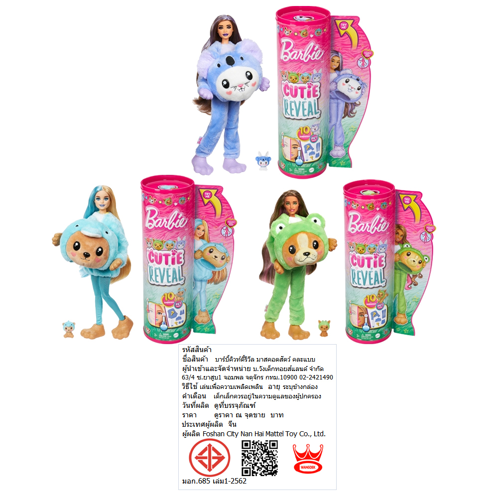 • มีเซอร์ไพรส์ 10 อย่างในกล่องเดียว ตุ๊กตาซีรีส์ธีมบาร์บี้ คิวตี้ รีวีล มอบประสบการณ์แกะกล่องที่น่ารักที่สุดพร้อมกับเพื่อนมาสคอตสุดแสนน่ารัก แฟชั่นหลากหลาย และความสนุกที่เปลี่ยนแปลงได้!