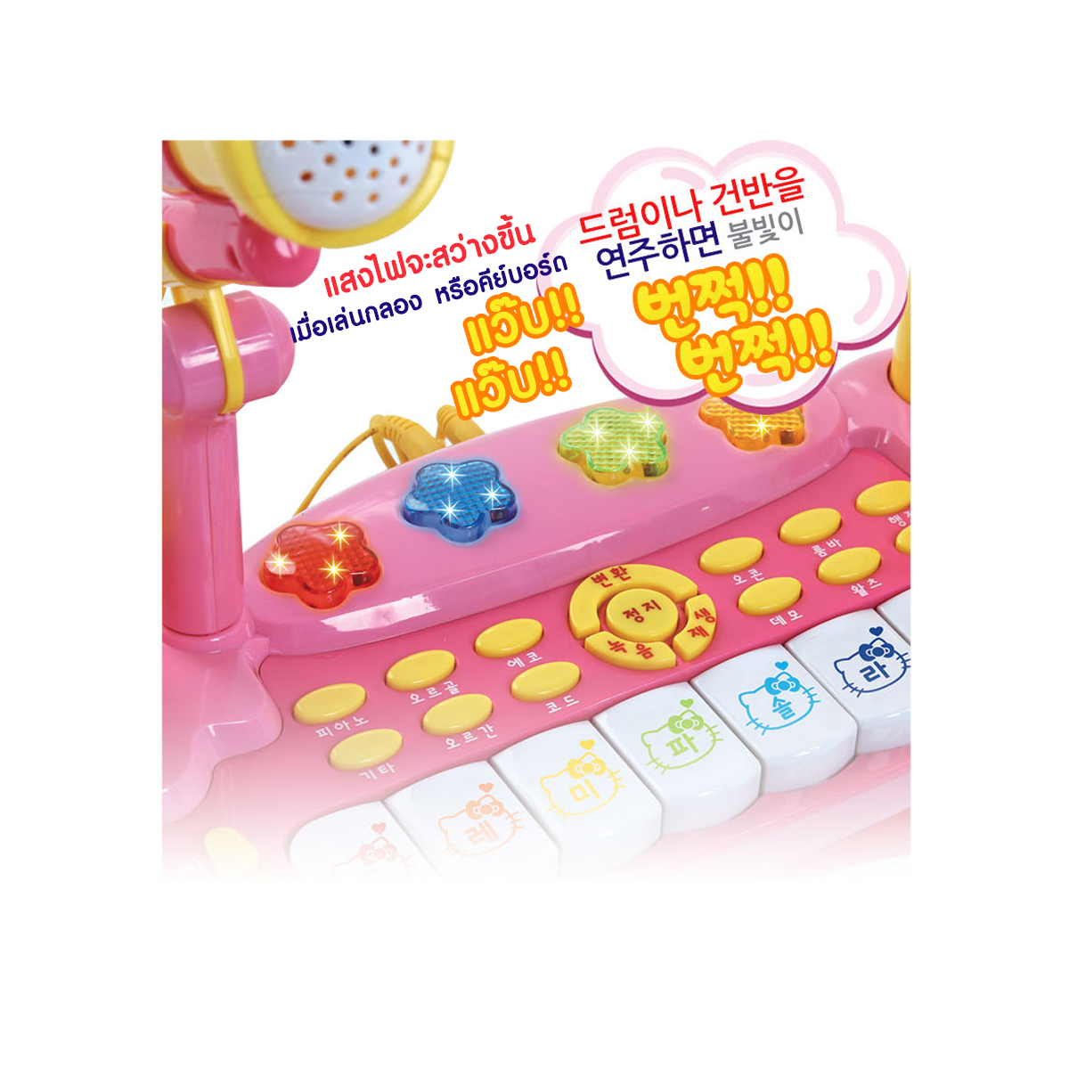 * เมื่อเล่นกลอง หรือคีย์เปียโน แสงไฟจะสว่างขึ้น