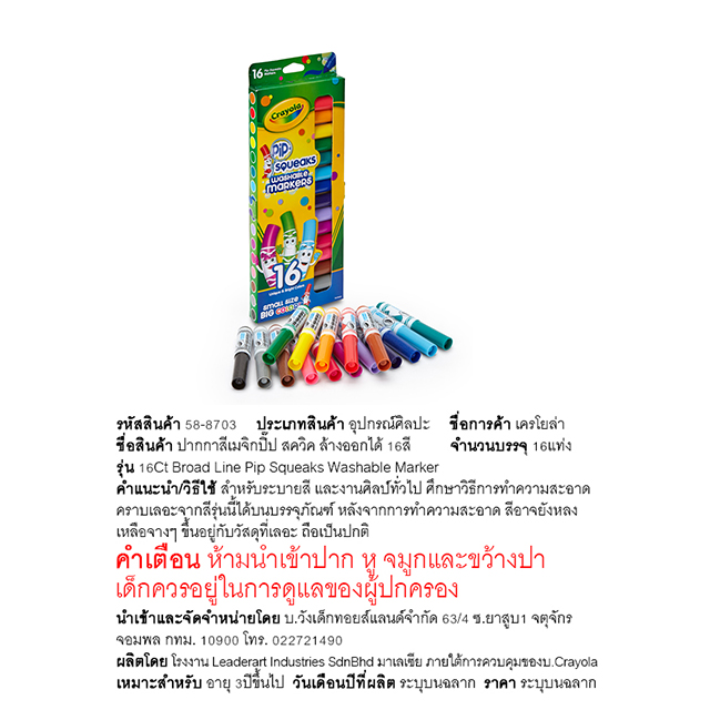 แบรนด์สินค้า : Crayola เครโยล่า