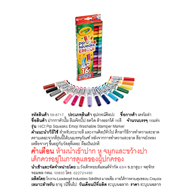 เครโยล่า ปากกาตัวปั๊ม สีเมจิกปิ๊ป สควิค ล้างออกได้ 16สี