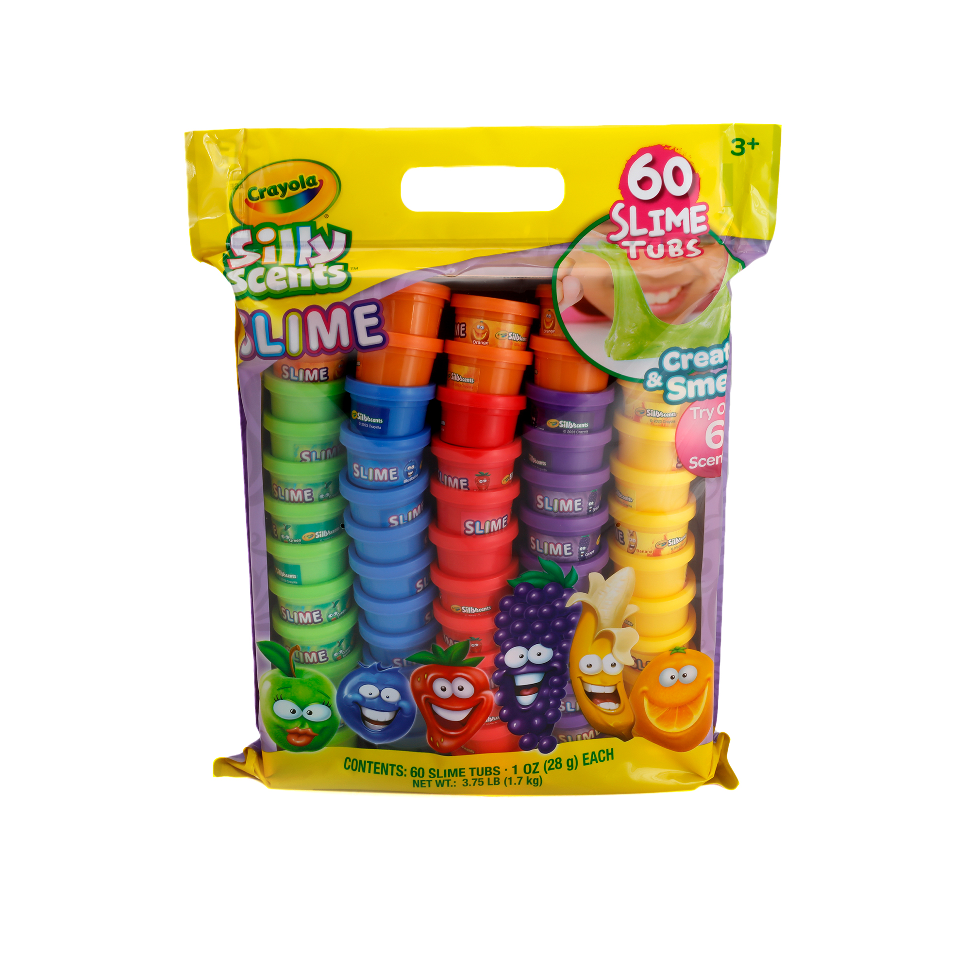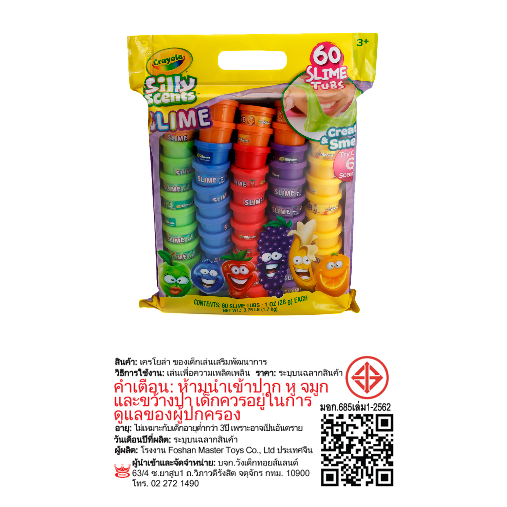 จัดเต็มความสนุกได้ทุกโอกาส! แบ่งปันความคิดสร้างสรรค์ได้ไม่จำกัดด้วย Crayola Silly Scents Slime สไลม์หอมกลิ่นผลไม้ แพ็คสุดคุ้ม 60 กระปุก ขนาด 1 ออนซ์ เหมาะสำหรับแบ่งปันในทุกโอกาส ไม่ว่าจะเป็นงานวันเกิด กิจกรรมศิลปะ ของเล่นวันฮาโลวีน หรือของขวัญในวันพิเศษต่างๆ