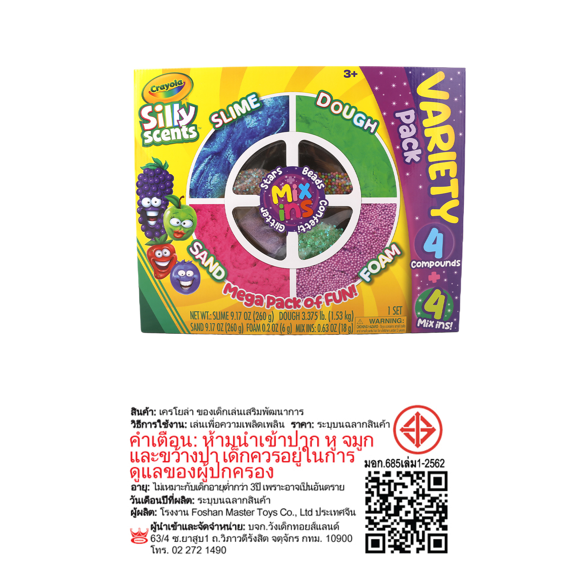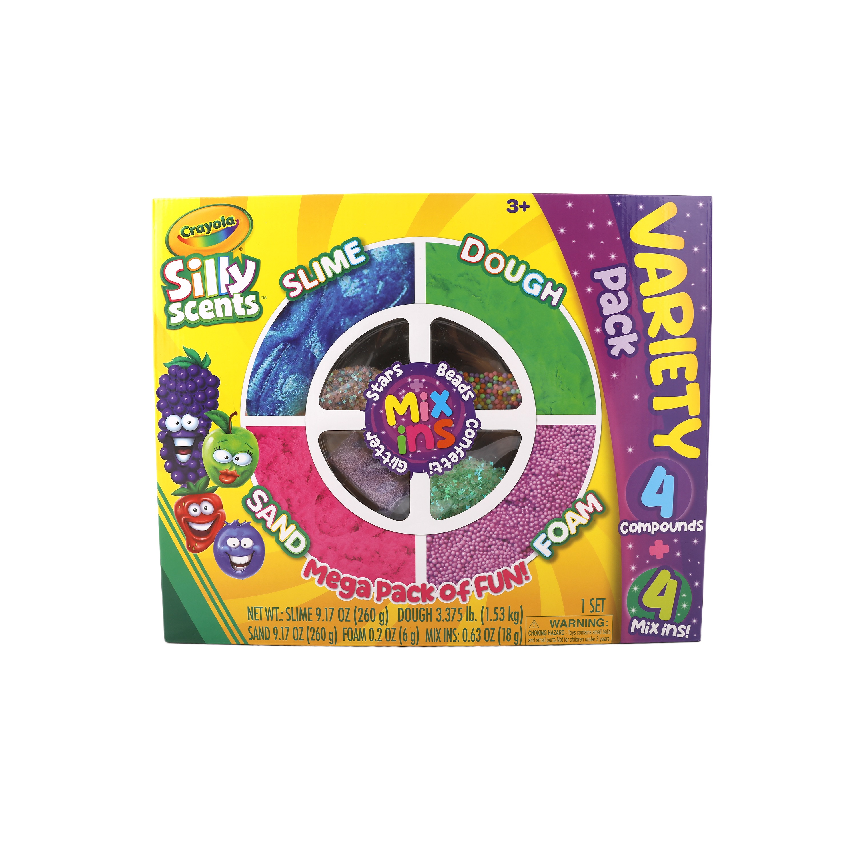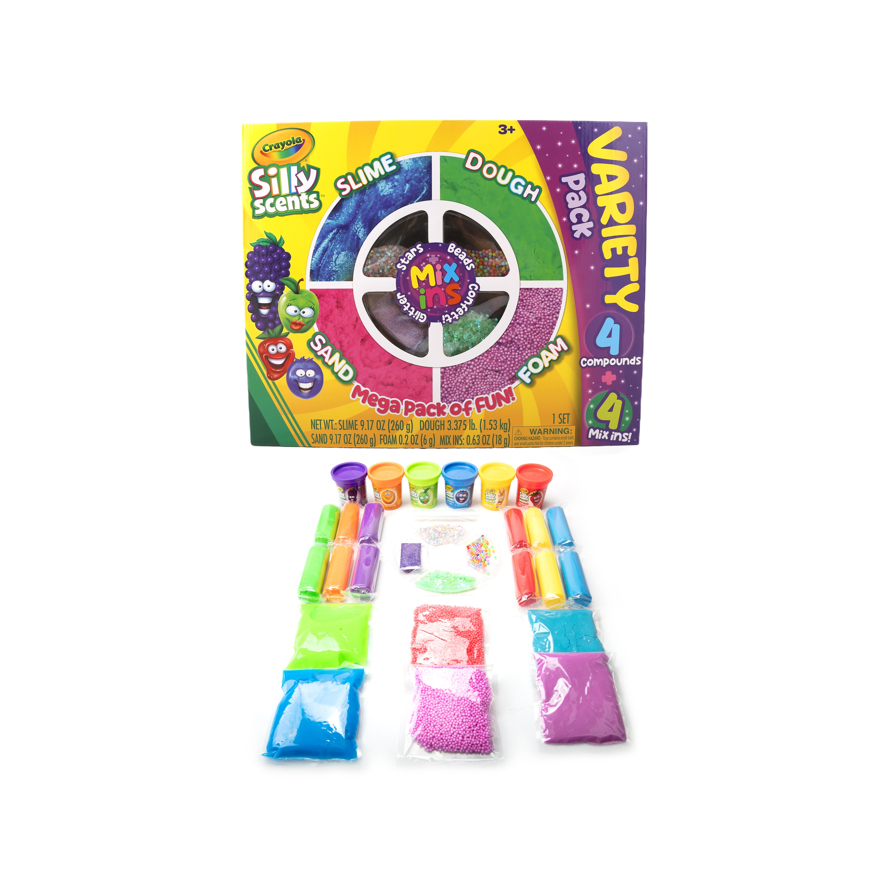 ชุด Crayola Silly Scents Variety Pack นี้ประกอบด้วยส่วนผสมหลากหลายแบบ ไม่ว่าจะเป็นสไลม์ แป้งโดว์หอม ทรายหอม โฟมหอม และอุปกรณ์ตกแต่ง "Mix Ins!" ให้เด็กๆ ได้สนุกกับการสัมผัสพื้นผิวและรูปทรงที่แตกต่าง พร้อมทั้งเพลิดเพลินไปกับชั่วโมงแห่งความคิดสร้างสรรค์อย่างไม่มีเบื่อ