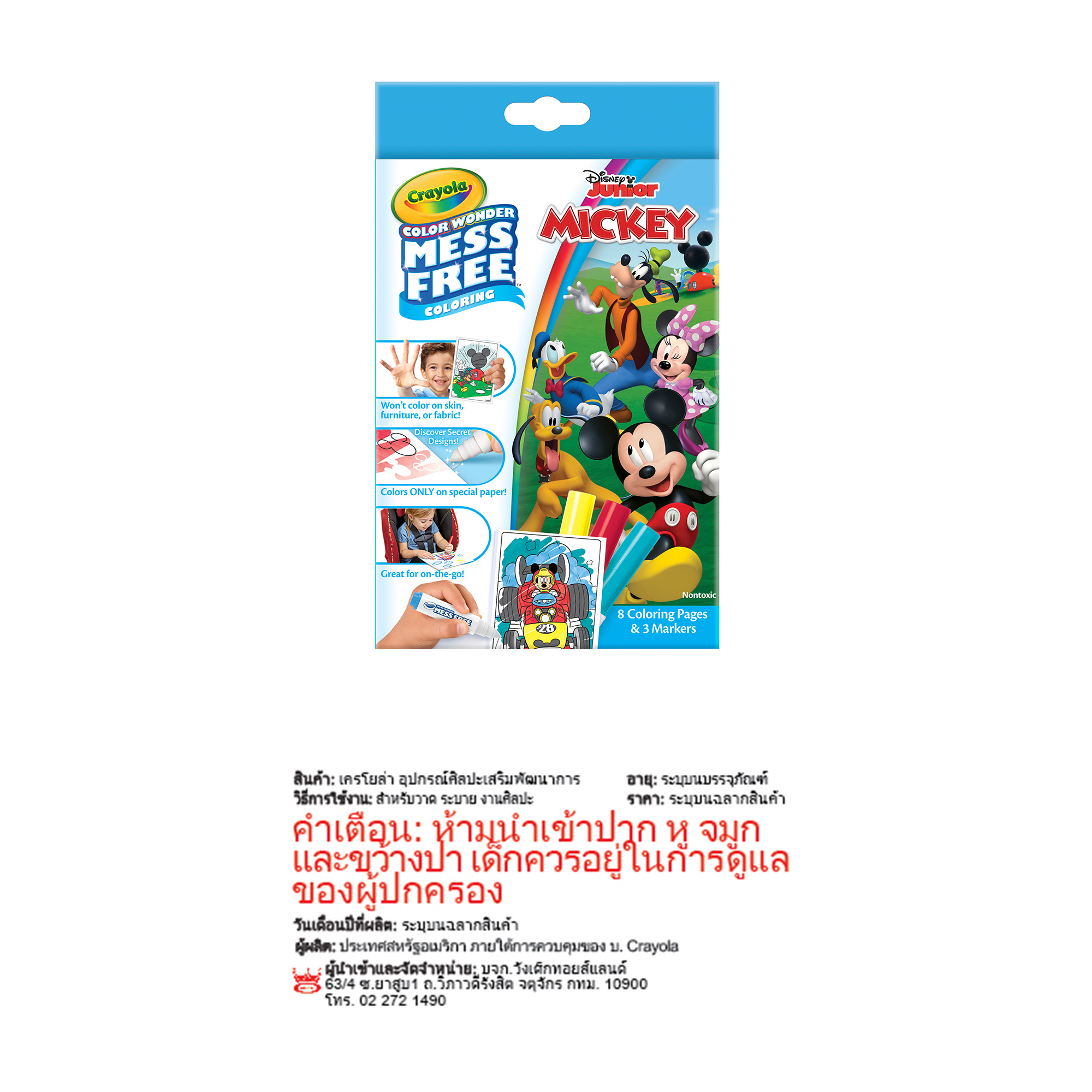 * ผลิตภัณฑ์ Color Wonder จะมองไม่เห็นบนพื้นผิวอื่น หากไม่ใช่บนกระดาษ รุ่น Mess Free Color Wonder