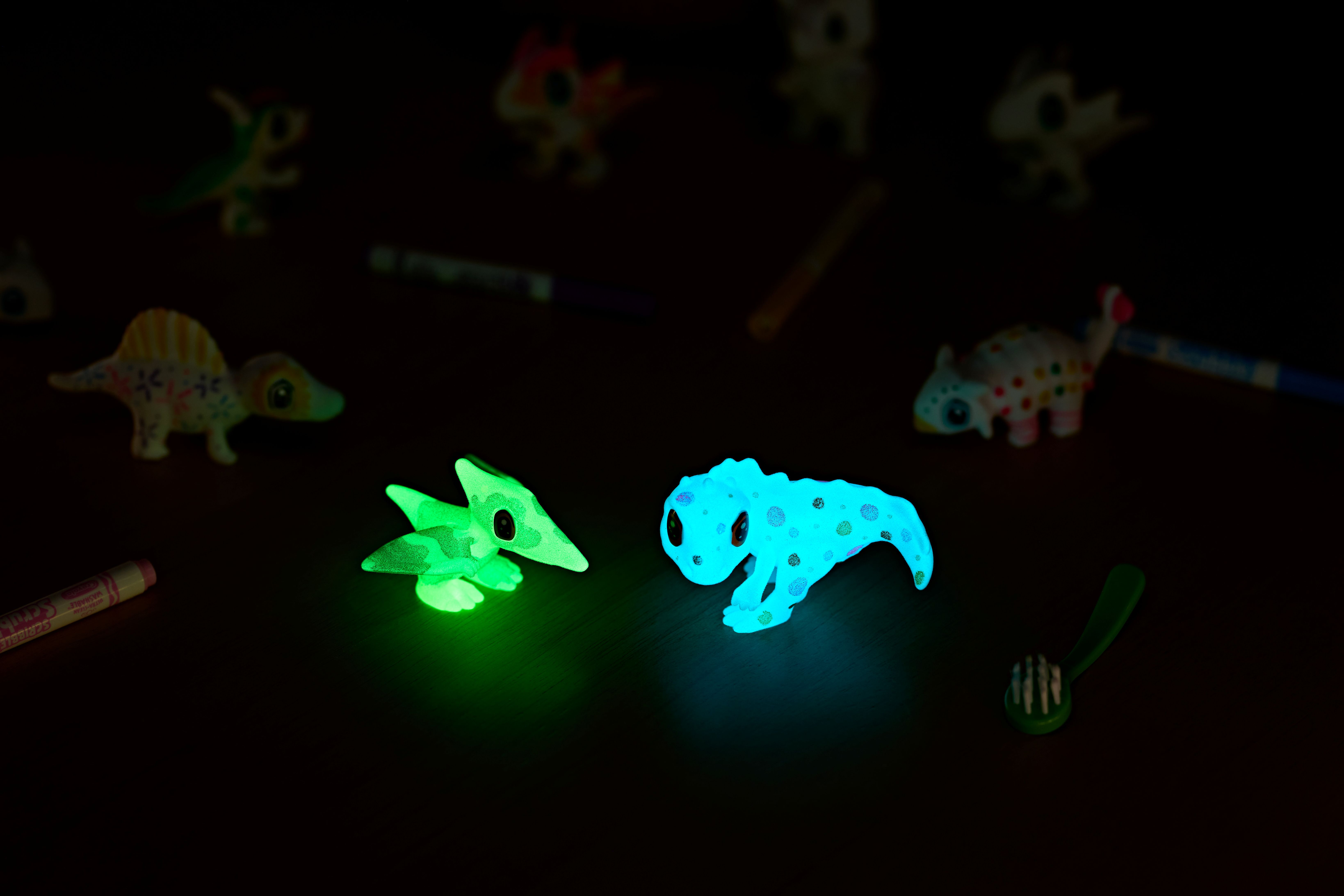 * ตุ๊กตาไดโนเสาร 2ตัว เรืองแสงในที่มืดได้ และทุกตัวขัดเช็ดสีออกได้ แล้วลงสีซ้ำได้
