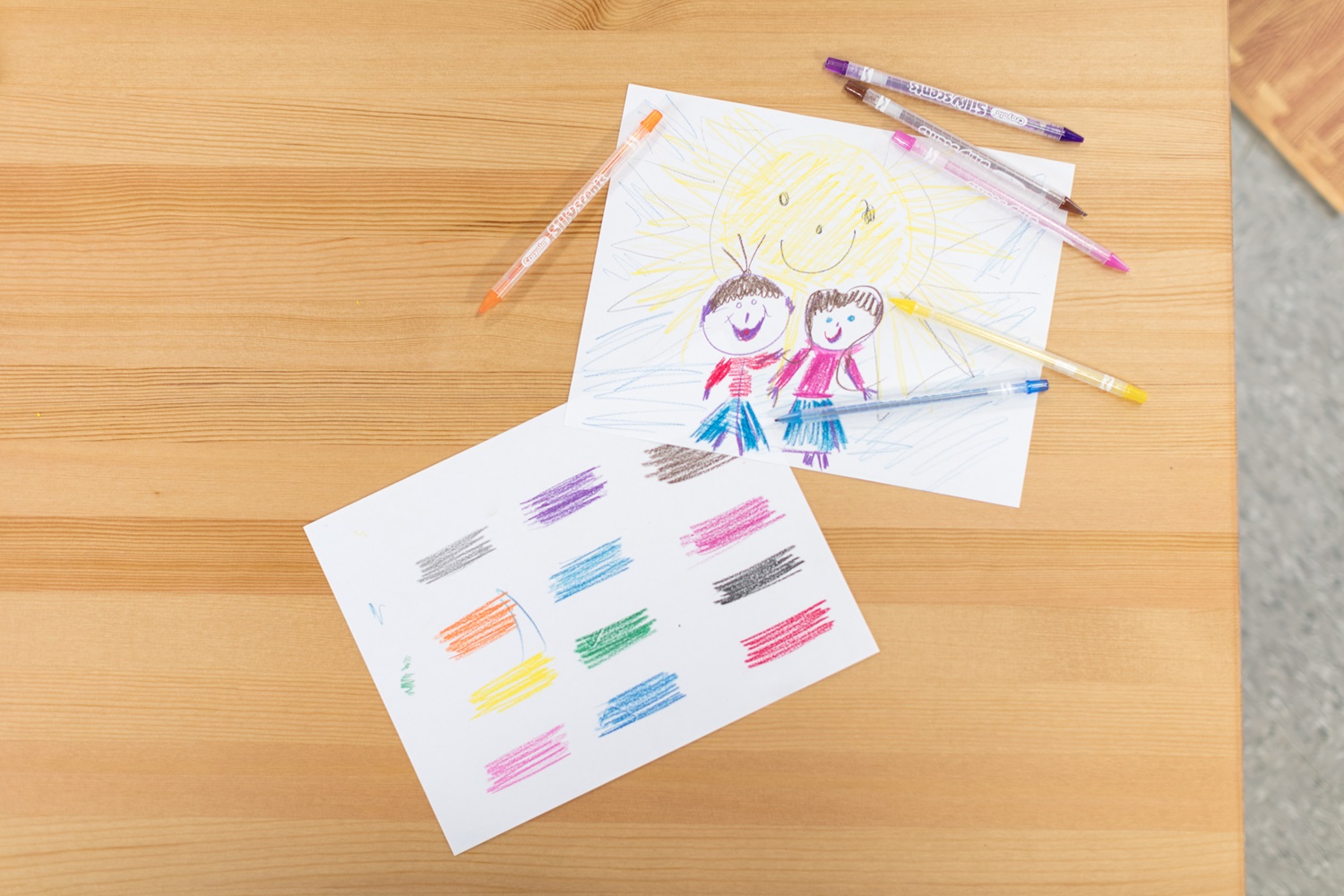 เพิ่มความสนุกให้การระบายสีของเด็ก ๆ ไม่ต้องเหลาดินสอ เพียงหมุนก็ใช้งานได้ทันที กลิ่นหอมแนวผลไม้และขนม เช่น เชอร์รี่ องุ่น บลูเบอร์รี่ และรสรูทเบียร์ เหมาะสำหรับเด็กอายุ 5 ปีขึ้นไป และปลอดภัยจากสารพิษ
