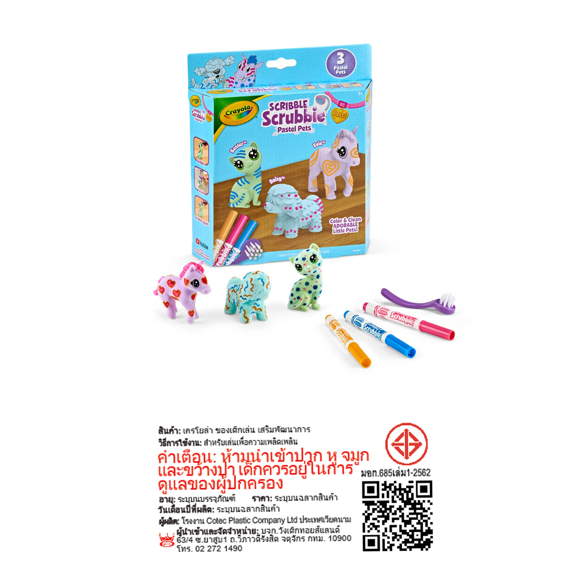 * ในชุดมาพร้อมกับ: ตุ๊กตาสคริบเบิ้ล สครับบี้ 3ตัว พร้อมแปรงขัดและปากกาล้างได้ 3 สี