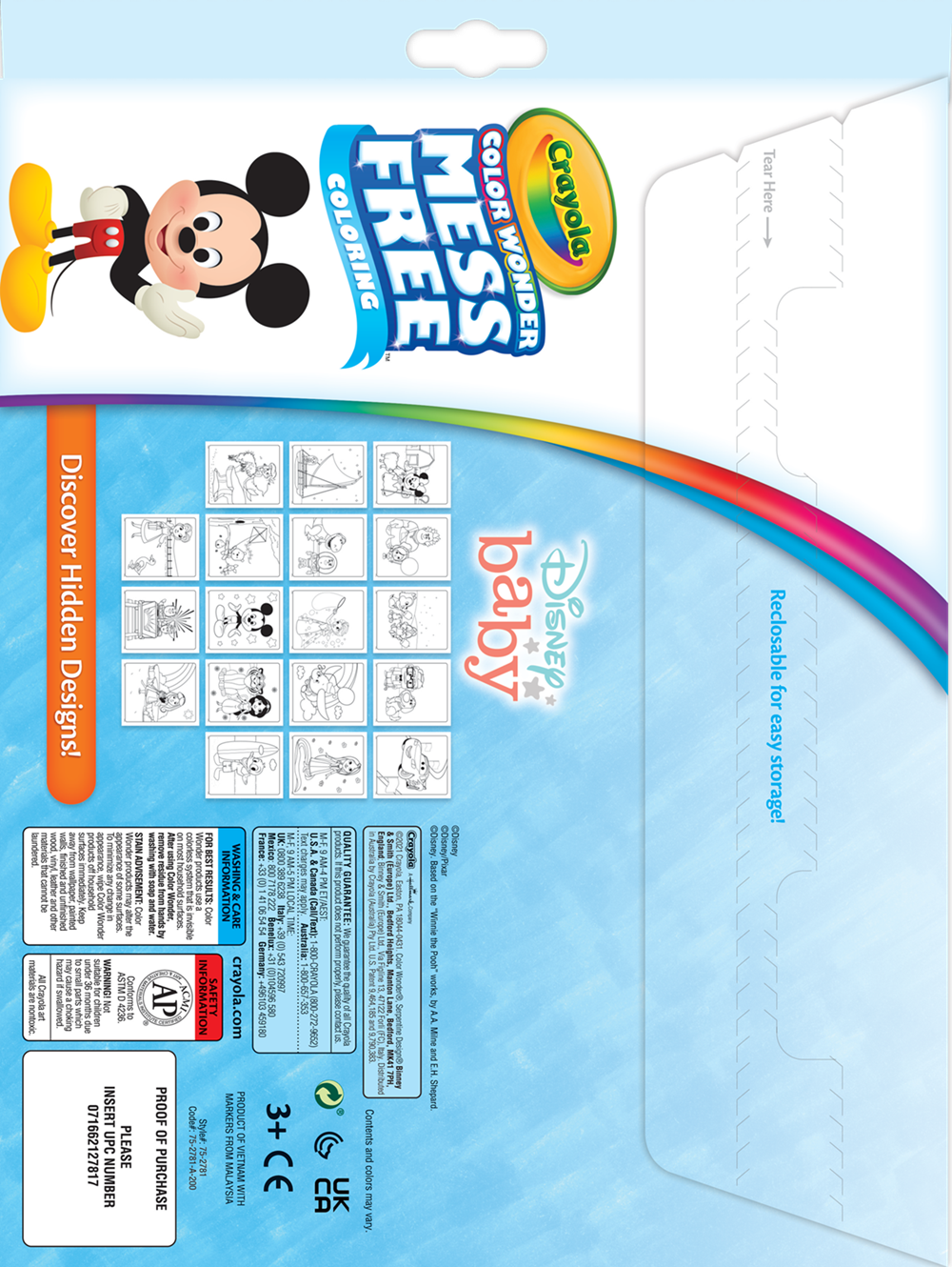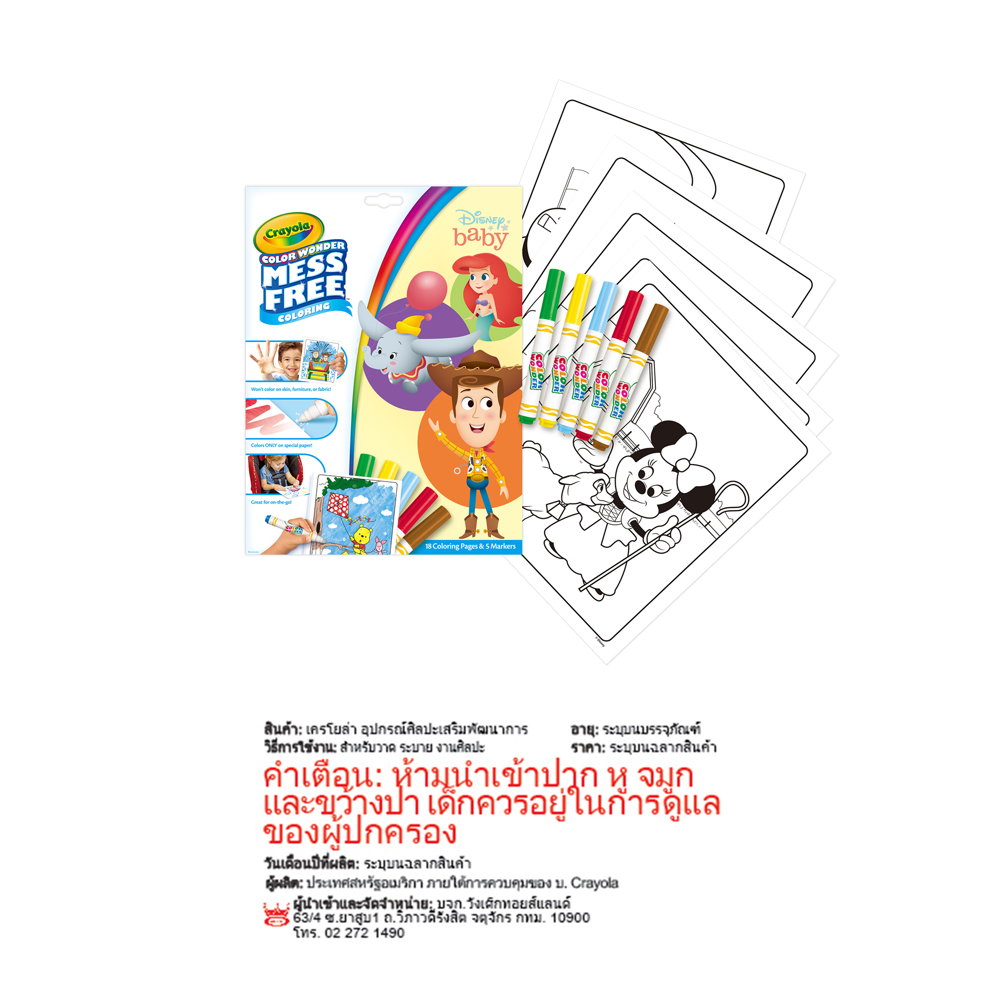 * ผลิตภัณฑ์ Color Wonder จะมองไม่เห็นบนพื้นผิวอื่น หากไม่ใช่บนกระดาษ รุ่น Mess Free Color Wonder
