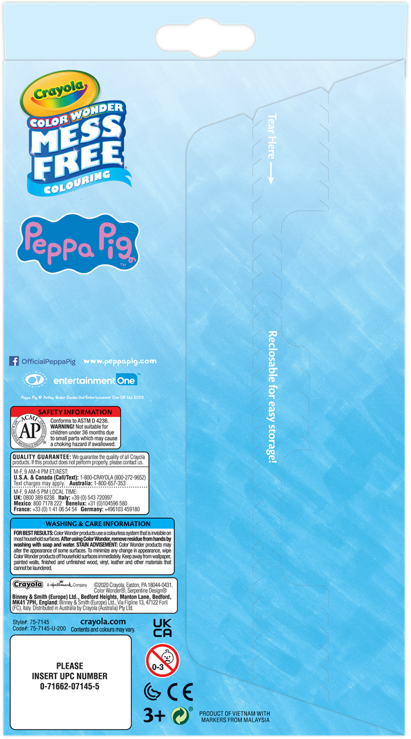 * ผลิตภัณฑ์ Color Wonder นี้อาจทำให้สีของพื้นผิวบางส่วนเปลี่ยนแปลงไป ควรทำความสะอาดหลังการใช้งานทุกครั้งด้วยผ้าชุบน้ำเช็ดทำความสะอาด และหลีกเลี่ยงวอลล์เปเปอร์ ผนัง ไม้ ไวนิล หนัง และวัสดุอื่นๆที่ไม่สามารถซักล้างได้