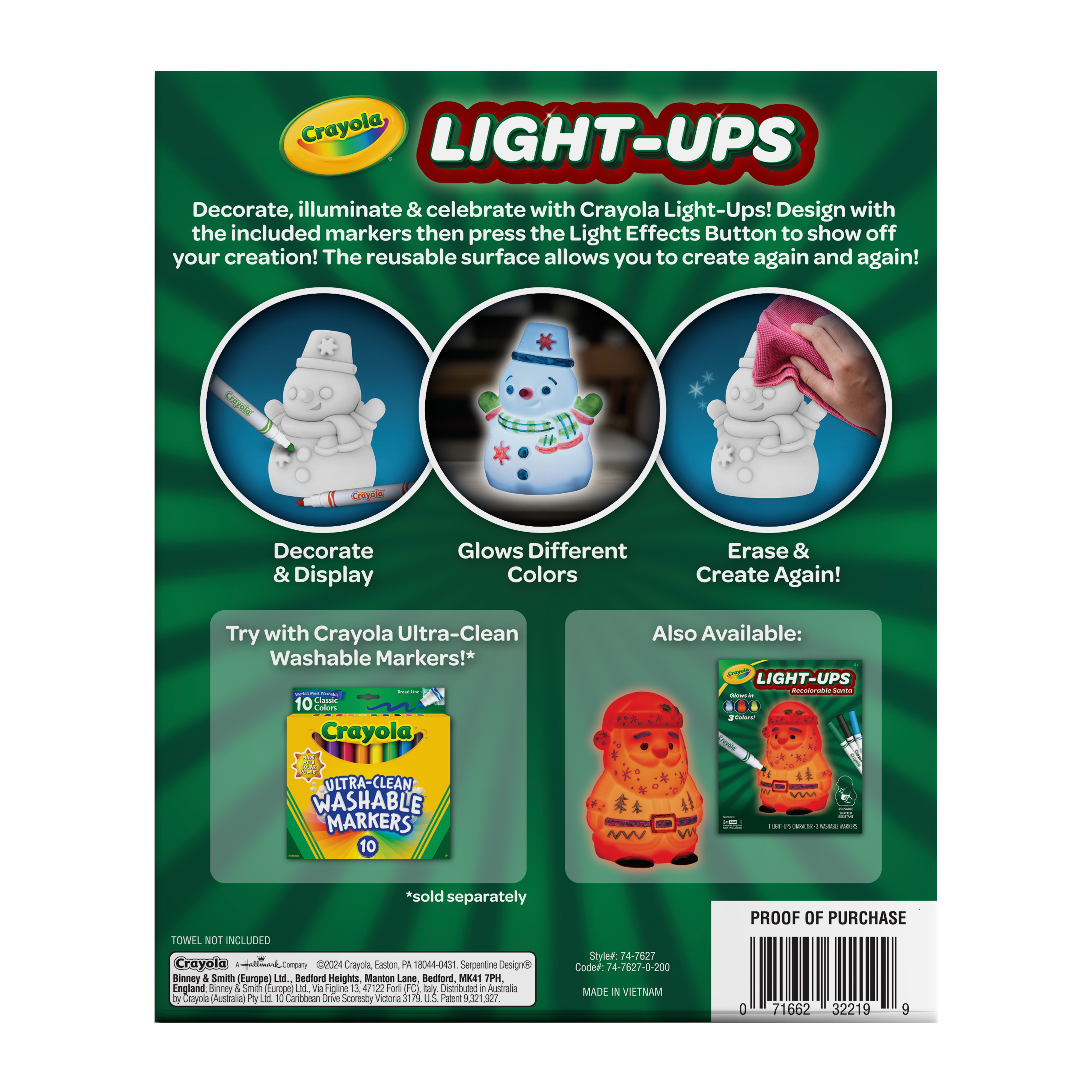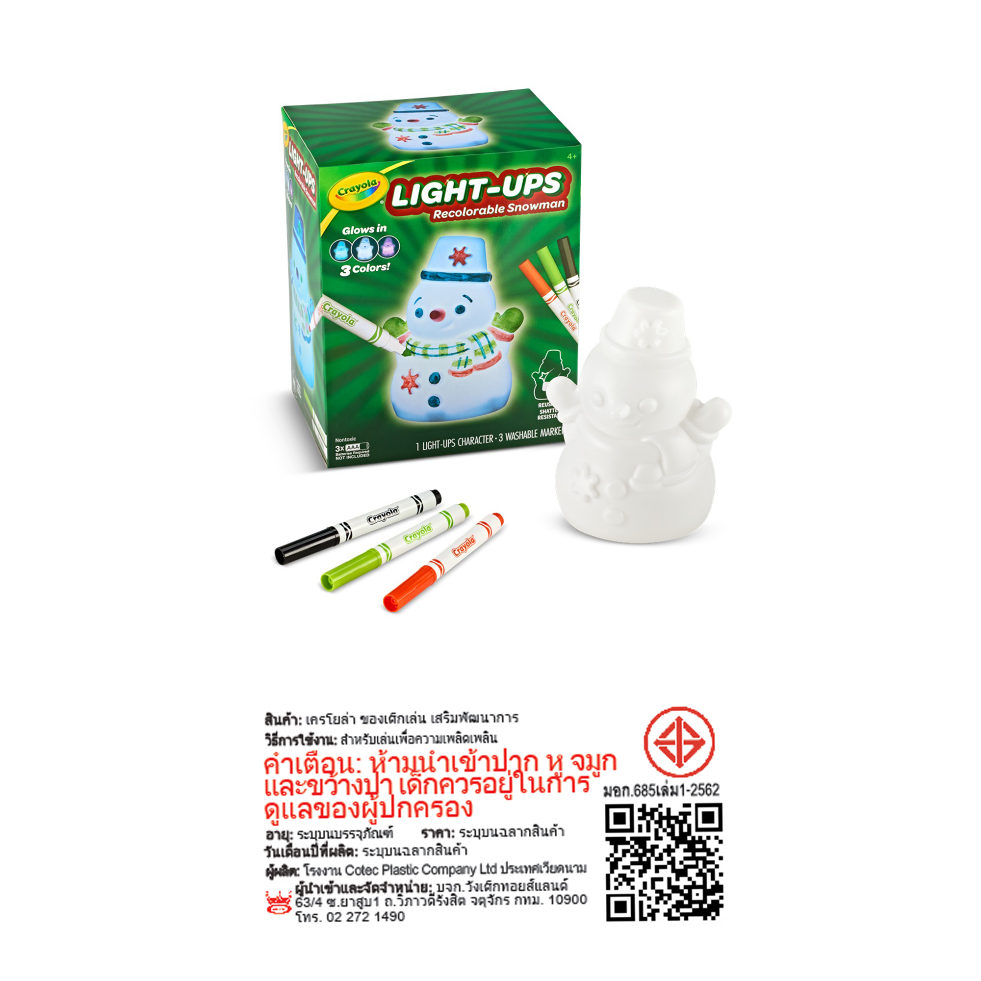 สร้างสีสันช่วงฤดูหนาวด้วย ตุ๊กตาหิมะเรืองแสงจาก Crayola! ทั้งของเล่น ตกแต่งบ้าน และกิจกรรมระบายสีในหนึ่งเดียว เด็กๆ สามารถใช้ปากกาล้างได้ 3 แท่ง วาดลวดลายบนตัวตุ๊กตาหิมะอย่างอิสระ ไม่ว่าจะเป็นเสื้อผ้าหน้าหนาว ถุงมือ หรือดีไซน์สุดสร้างสรรค์ เมื่อต้องการเปลี่ยน ก็เพียงเช็ดออกแล้ววาดใหม่ได้ทันที