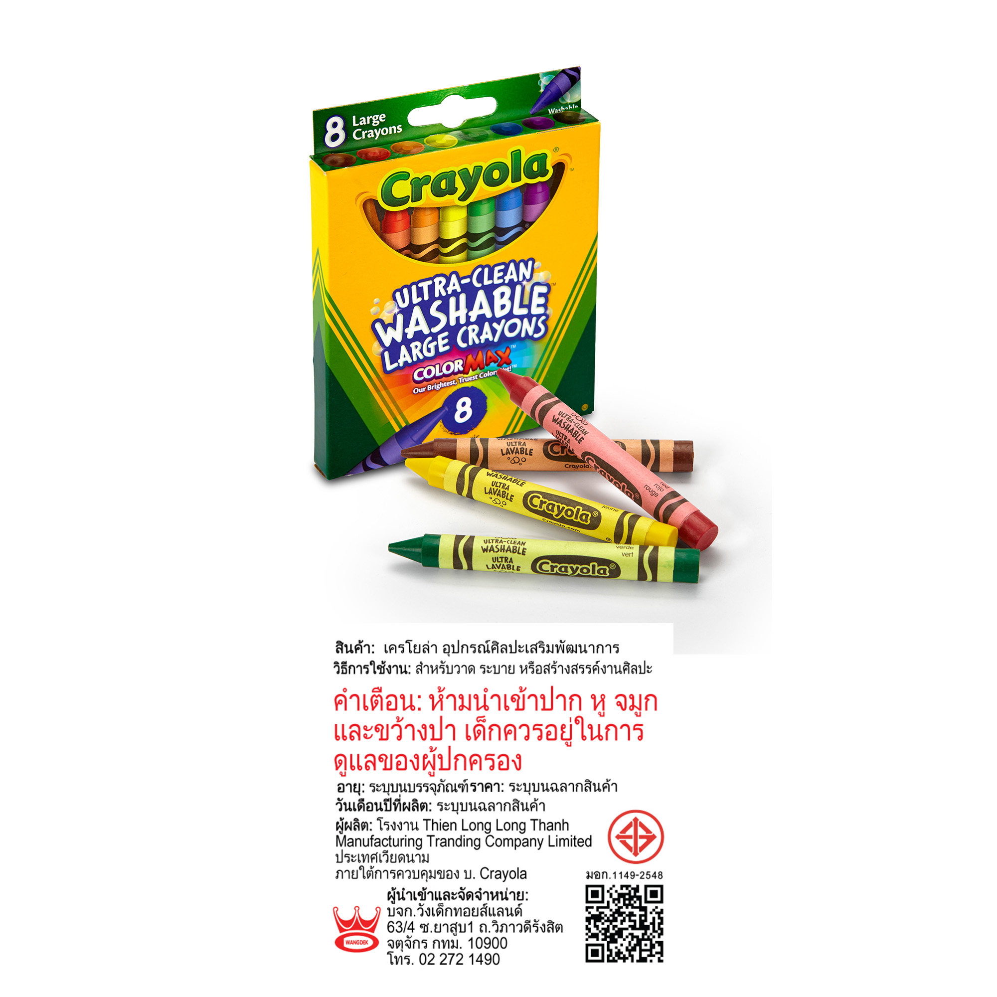 สีเทียน Crayola 8 แท่ง Ultra-Clean Washable Large มอบชั่วโมงแห่งความสนุกและจินตนาการให้ลูกน้อยของคุณได้อย่างไร้กังวล! ให้ทุกการสร้างสรรค์ของลูกน้อย เป็นช่วงเวลาแห่งความสุขที่ผู้ปกครองวางใจได้