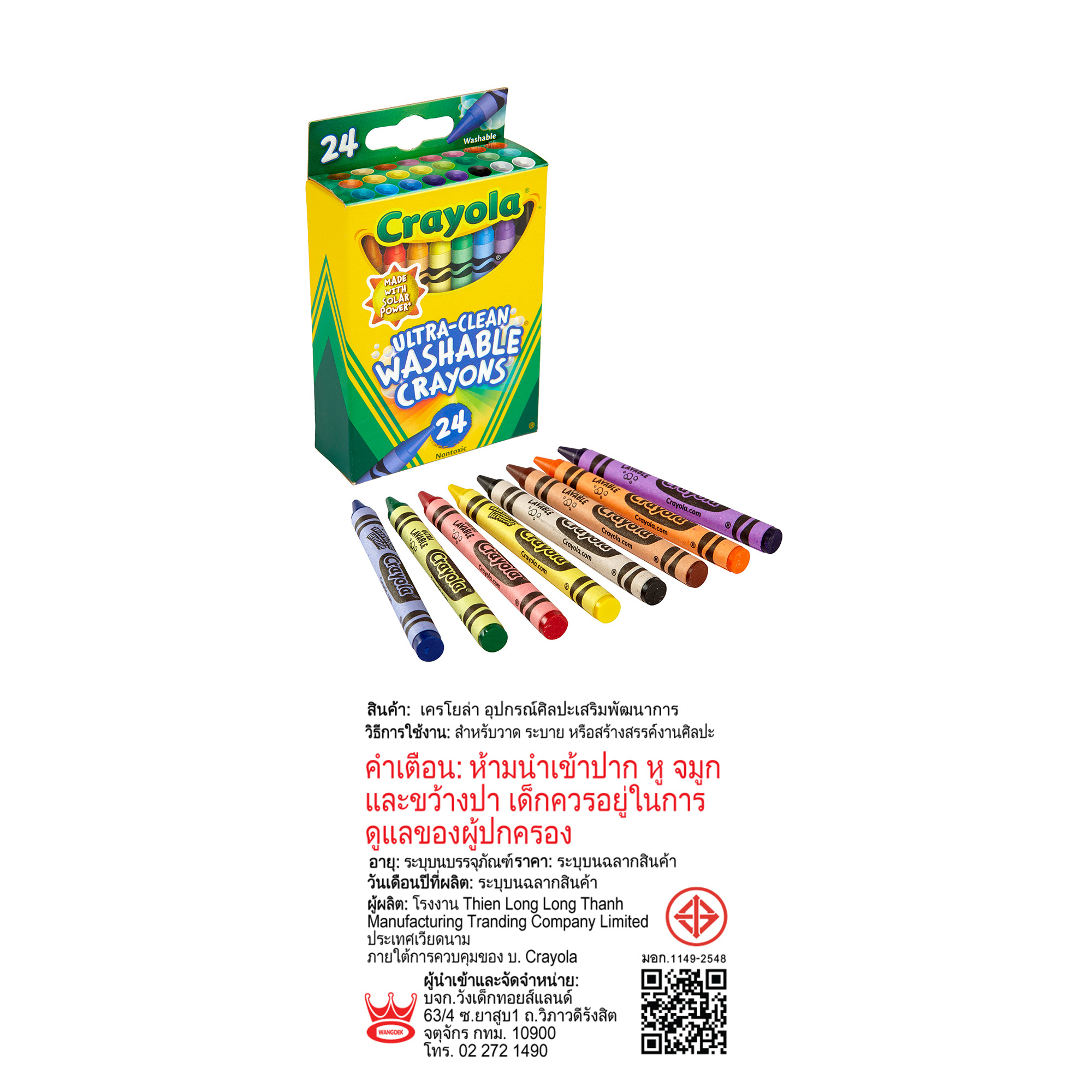 ให้ลูกน้อยของคุณปลดปล่อยจินตนาการได้อย่างเต็มที่โดยไม่ต้องกังวลเรื่องคราบเลอะเทอะอีกต่อไป สีเทียน Crayola Ultra-Clean Washable 24 สี ได้รับการออกแบบมาเป็นพิเศษเพื่อให้สามารถล้างทำความสะอาดได้ง่ายที่สุด!