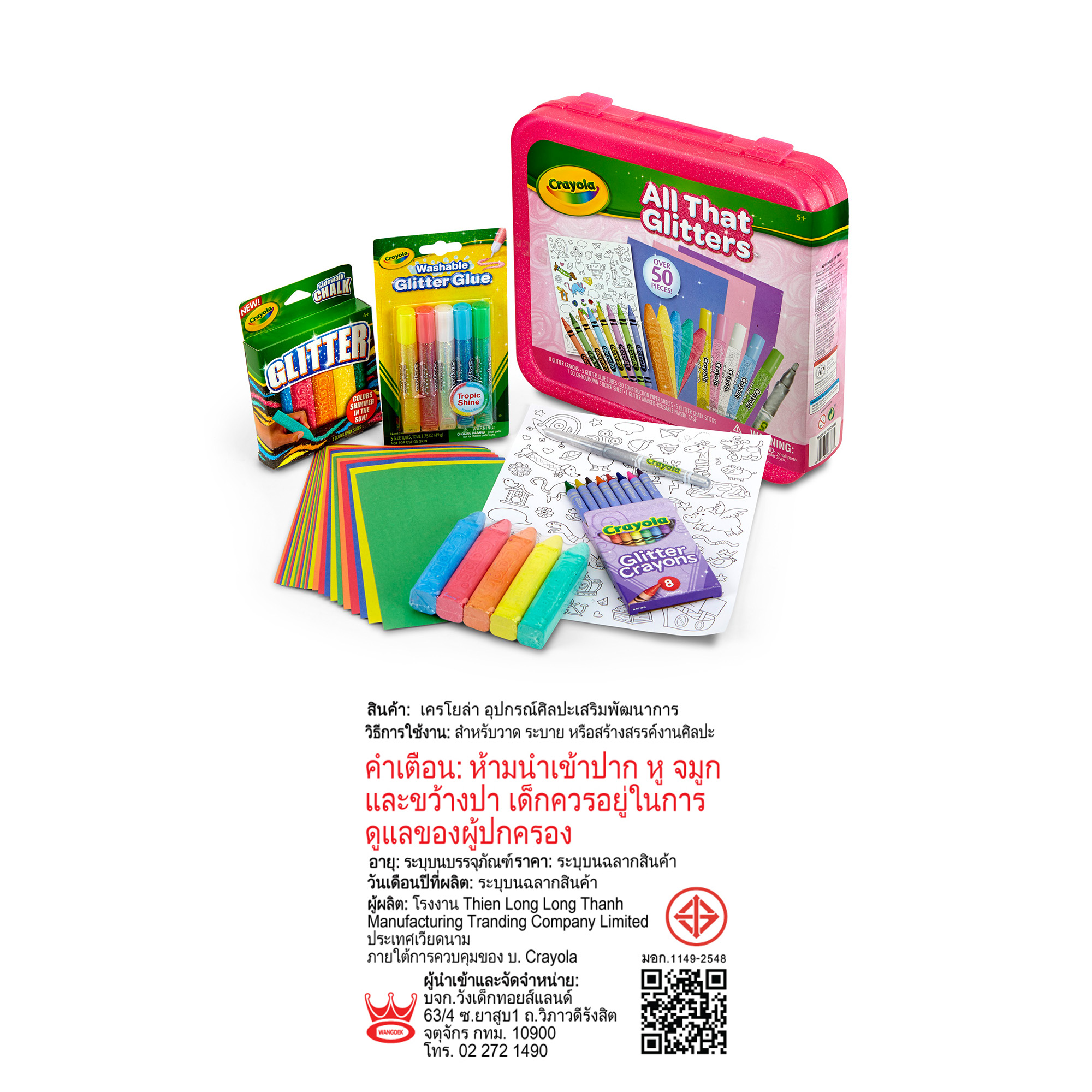 มีทุกอย่างที่คุณต้องการเพื่อสร้างสรรค์ผลงานศิลปะให้โดดเด่นและมีประกายระยิบระยับ ภายในชุดประกอบด้วยสีเทียนกากเพชร, กาวกากเพชร, ปากกามาร์กเกอร์, และชอล์กกากเพชร จาก Crayola รวมถึงกระดาษสร้างสรรค์, แผ่นสติกเกอร์สำหรับระบายสี และกระเป๋าเก็บของที่ทนทาน เหมาะสำหรับศิลปินอายุ 5 ปีขึ้นไป ชุดอุปกรณ์นี้เต็มไปด้วยเครื่องมือที่มีประกายกากเพชรสำหรับเพิ่มความแวววาวและสีสันให้กับผลงานศิลปะของคุณ