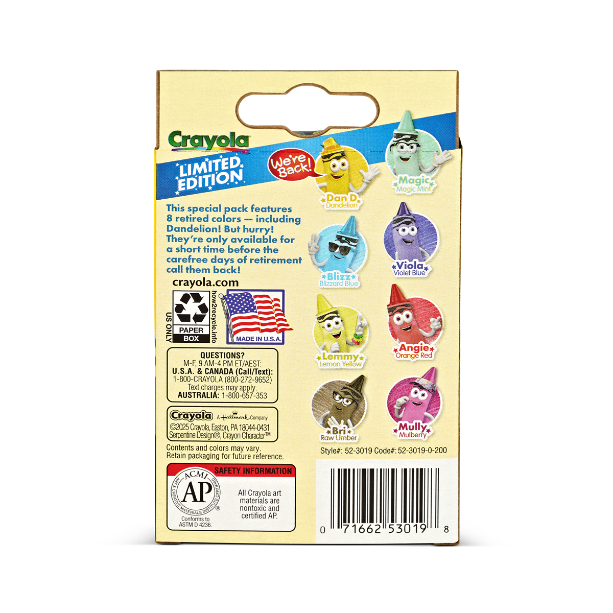 ✔ สีสันสดใส คมชัด ลากเส้นได้ต่อเนื่อง มาพร้อมกับสีที่เลิกผลิตไปแล้ว ได้แก่ Dandelion, Mulberry, Blizzard Blue, Raw Umber, Lemon Yellow, Orange Red, Violet Blue, และ Magic Mint!