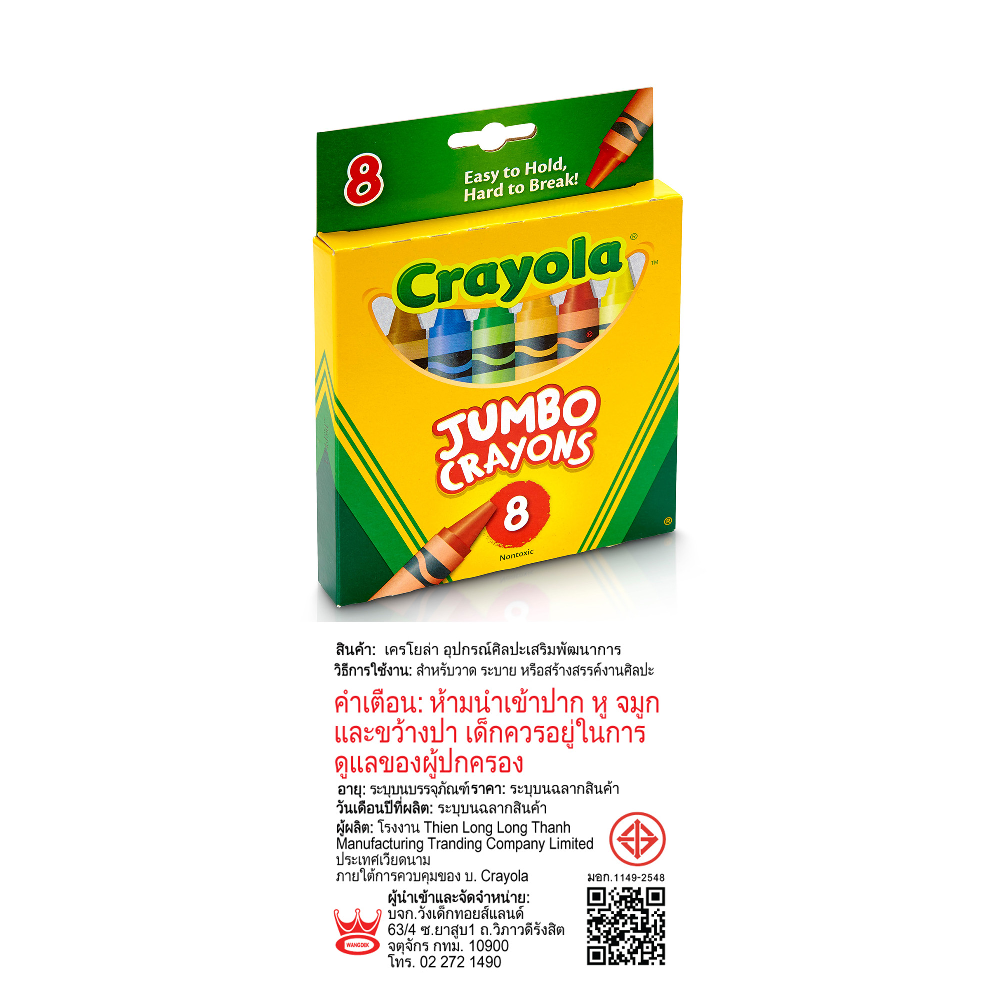 ขอแนะนำชุดสี Crayola Jumbo Crayon Set 8แท่ง สำหรับศิลปินตัวน้อย! สีเทียนจัมโบ้ขนาดพอเหมาะสำหรับมือเล็กๆ ที่จะจับได้ถนัดมือ! สนุกกับการระบายสีด้วยดินสอสีคุณภาพสูงสีสันสดใส คมชัด ใช้ได้ยาวนาน ไม่หักง่าย ผลิตด้วยคุณภาพมาตรฐาน Crayola