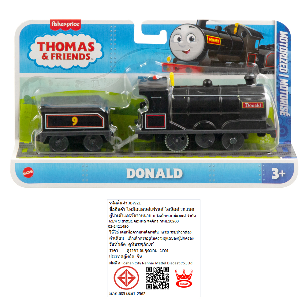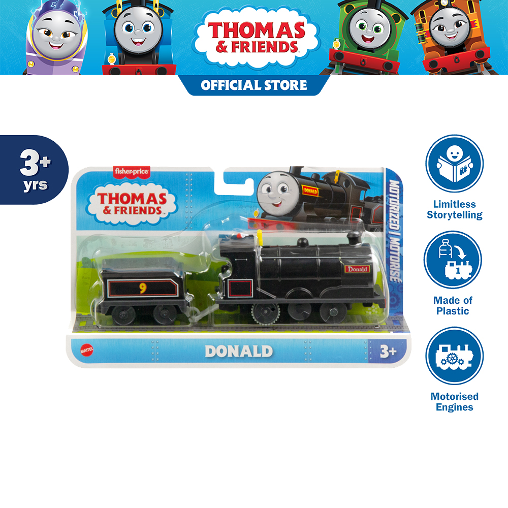 • รถไฟของเล่นแบบมีมอเตอร์ที่มาพร้อมกับตัวละคร Donald รถไฟหมายเลข 9 จาก Thomas & Friends