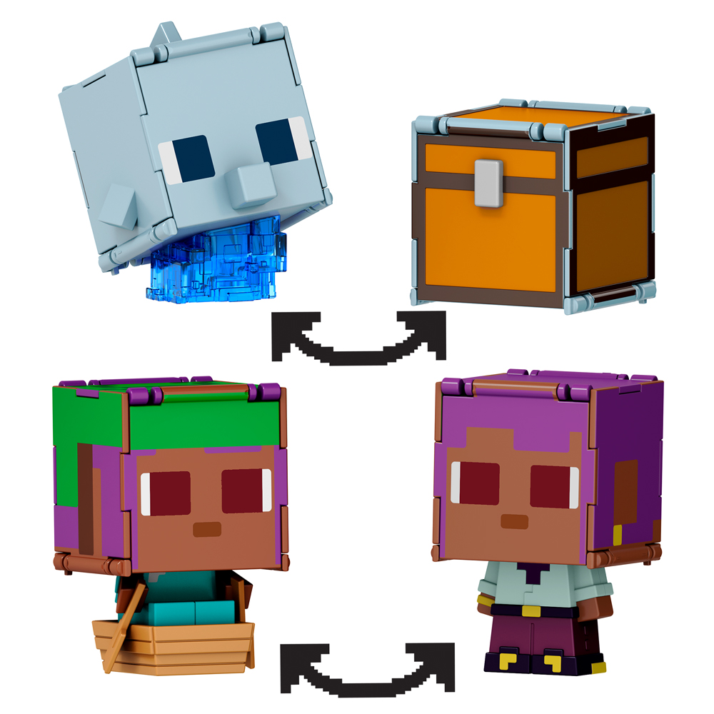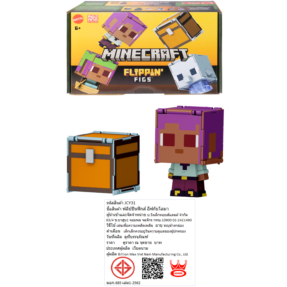 เรียกคนอยู่ไม่สุขทุกคน! เตรียมตัวให้พร้อมกับการเคลื่อนไหวไม่รู้จบ ด้วย ฟลิปปินฟิกส์ ฟิกเกอร์สะสมขนาด 3.75 นิ้ว แบบคู่! เพียงพลิกแผงบนหัวขนาดใหญ่ของแต่ละตัวแล้วล็อคเข้าที่ เปิดให้เห็นฟิกเกอร์ไมน์คราฟท์อีกตัวภายในไม่กี่วินาที เล่นได้แบบทูอินวัน ที่ตั้งใจให้เล่นซ้ำแล้วซ้ำอีก! นอกจากนี้ การจับคู่ตัวละครยังทำให้การสะสมเป็นเรื่องสนุกทั้งสำหรับเด็กและผู้ใหญ่ ออกแบบเป็นลักษณะพิกเซลตรงตามเอกลักษณ์ของเกมไมน์คราฟท์ สีและการตกแต่งอาจแตกต่างจากภาพประกอบ