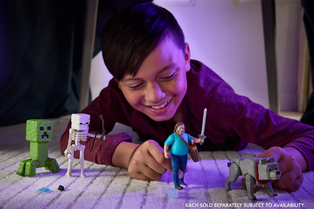ก้าวผ่านประตูมิติสู่โลกผจญภัยของภาพยนตร์ไมน์คราฟท์มูวี่ พบกับฟิกเกอร์แอคชั่นที่ถ่ายทอดมาจากภาพยนตร์ ตัวละครเหล่านี้มีรายละเอียดที่สมจริงและขยับข้อต่อได้ ทำให้จัดท่าทางได้อย่างมีชีวิตชีวา ฟิกเกอร์แอคชั่นขนาด 4 นิ้วแต่ละตัวมาพร้อมกับอุปกรณ์เสริมเฉพาะของตัวละครนั้นๆ เช่น อาวุธ ของเล่น แม้แต่โครงกระดูกก็มี