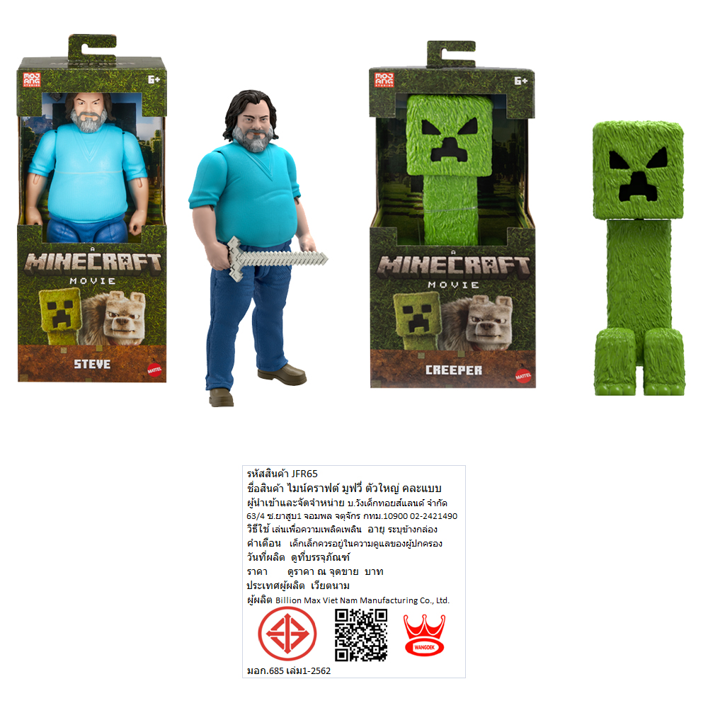 ก้าวผ่านประตูมิติเข้าสู่โลกผจญภัยของภาพยนตร์ไมน์คราฟท์มูวี่ พบกับฟิกเกอร์แอ็คชั่นขนาดใหญ่ ซึ่งเป็นตัวละครจากภาพยนตร์ ขนาด 12 นิ้ว! ด้วยรายละเอียดที่สมจริงและข้อต่อที่ขยับได้ ฟิกเกอร์เหล่านี้จะนำความสนุกของไมน์คราฟท์ออกมาสู่โลกจริง สร้างฉากภาพยนตร์โปรดขึ้นมาใหม่หรือจะสร้างเรื่องขึ้นมาเองเลย! ฟิกเกอร์สะสมเหล่านี้เป็นของขวัญที่ให้ได้ทั้งแฟนเกมและแฟนภาพยนตร์ไมน์คราฟท์มูวี่ ที่มีอายุตั้งแต่ 6 ปีขึ้นไป! แต่ละชิ้นจำหน่ายแยกกัน ขึ้นอยู่กับความพร้อมให้บริการ สีและการตกแต่งอาจแตกต่างจากภาพประกอบ