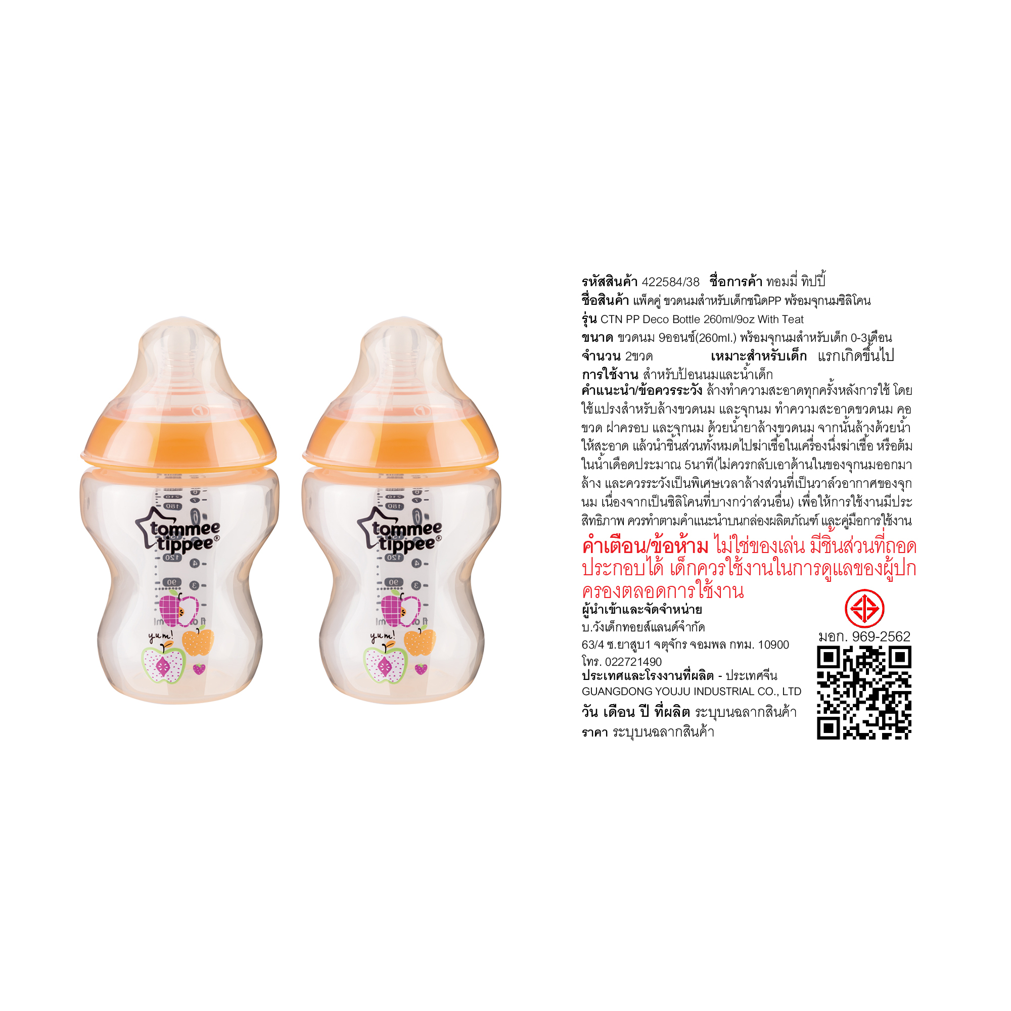 จรก. ทอมมี่ ทิปปี้ แพ็คคู่ขวดนม รุ่น ใกล้เคียงธรรมชาติ ขนาด 9 ออนซ์ รุ่นสีส้ม พร้อมจุกนมสำหรับเด็กแรกเกิด