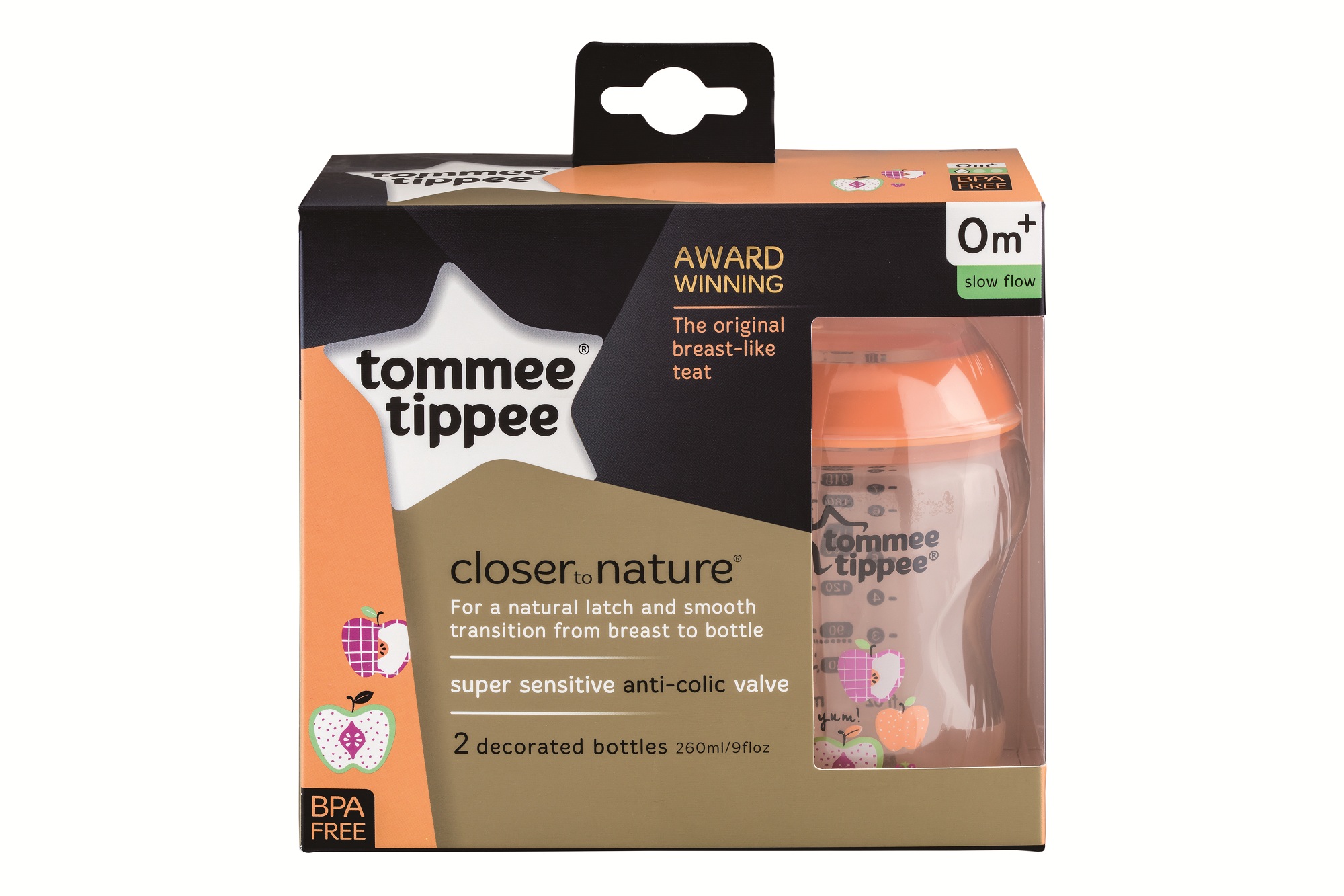 แพ็คคู่ขวดนม ทอมมี่ ทิปปี้ รุ่น Closer to Nature ขนาด 9 oz รุ่นสีส้ม พร้อมจุกนมสำหรับเด็กแรกเกิด